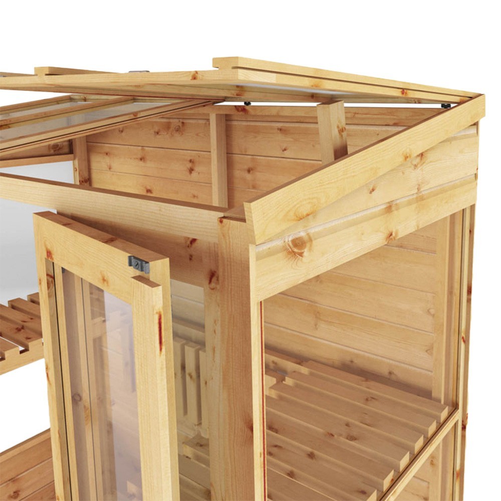 Heavy-duty tongue and groove boards are used to construct this greenhouse. Using an interlocking method, the boards lock together to create a premium, strong and hard-wearing finish. Complete with thick wooden framing to support the cladding internally, this building offers a rigid and long-lasting structure.