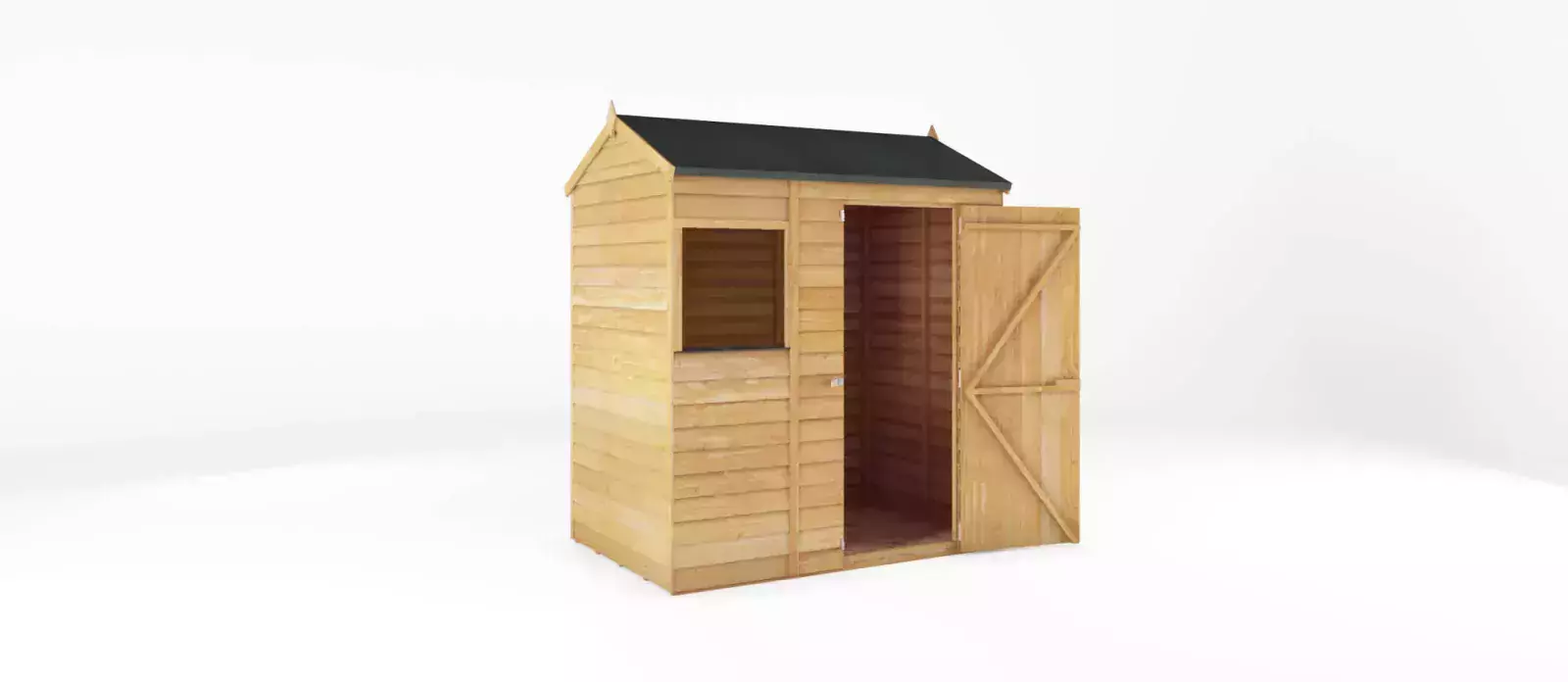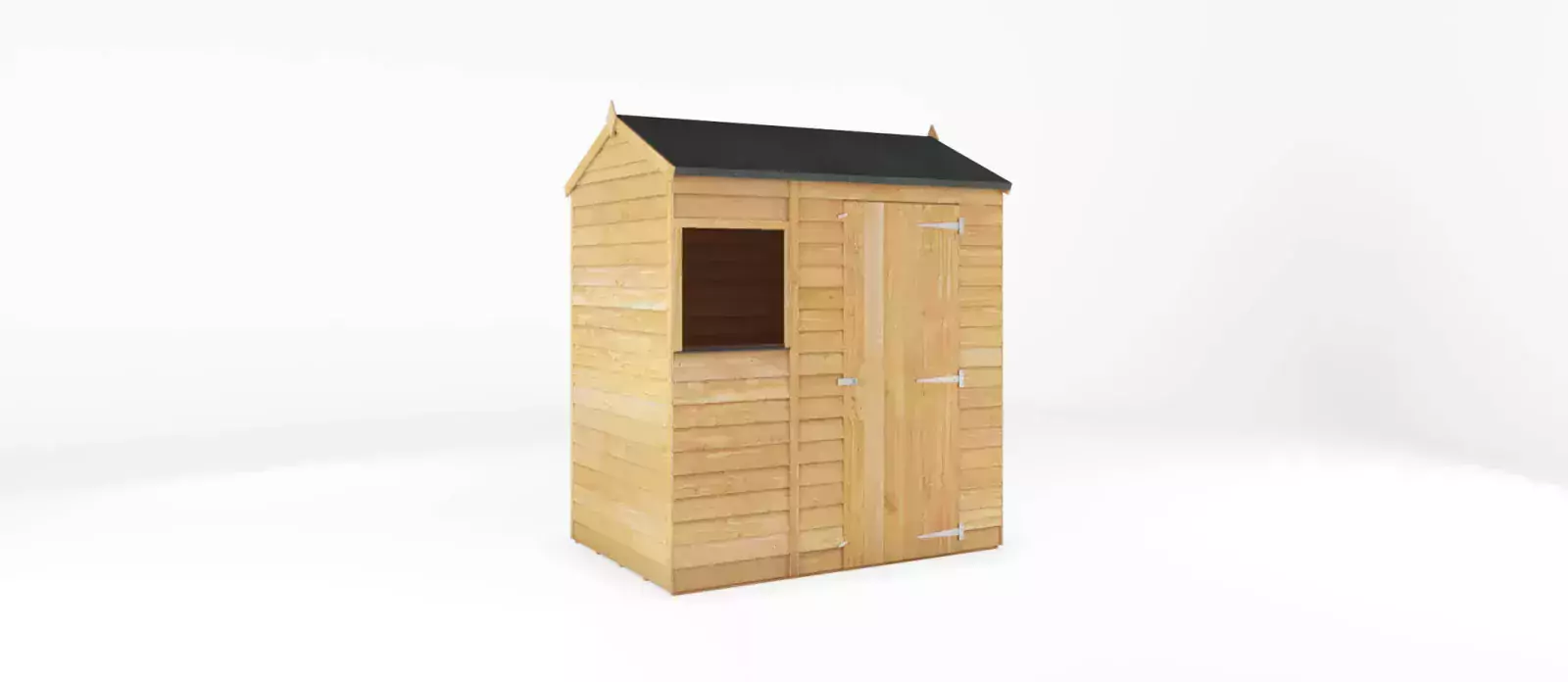 The Mercia 6×4 Overlap Reverse Apex Timber Shed  is perfect for those who are on a budget. A must have for any garden, this shed is the perfect storage space for your garden tools, equipment, furniture, and outdoor games.