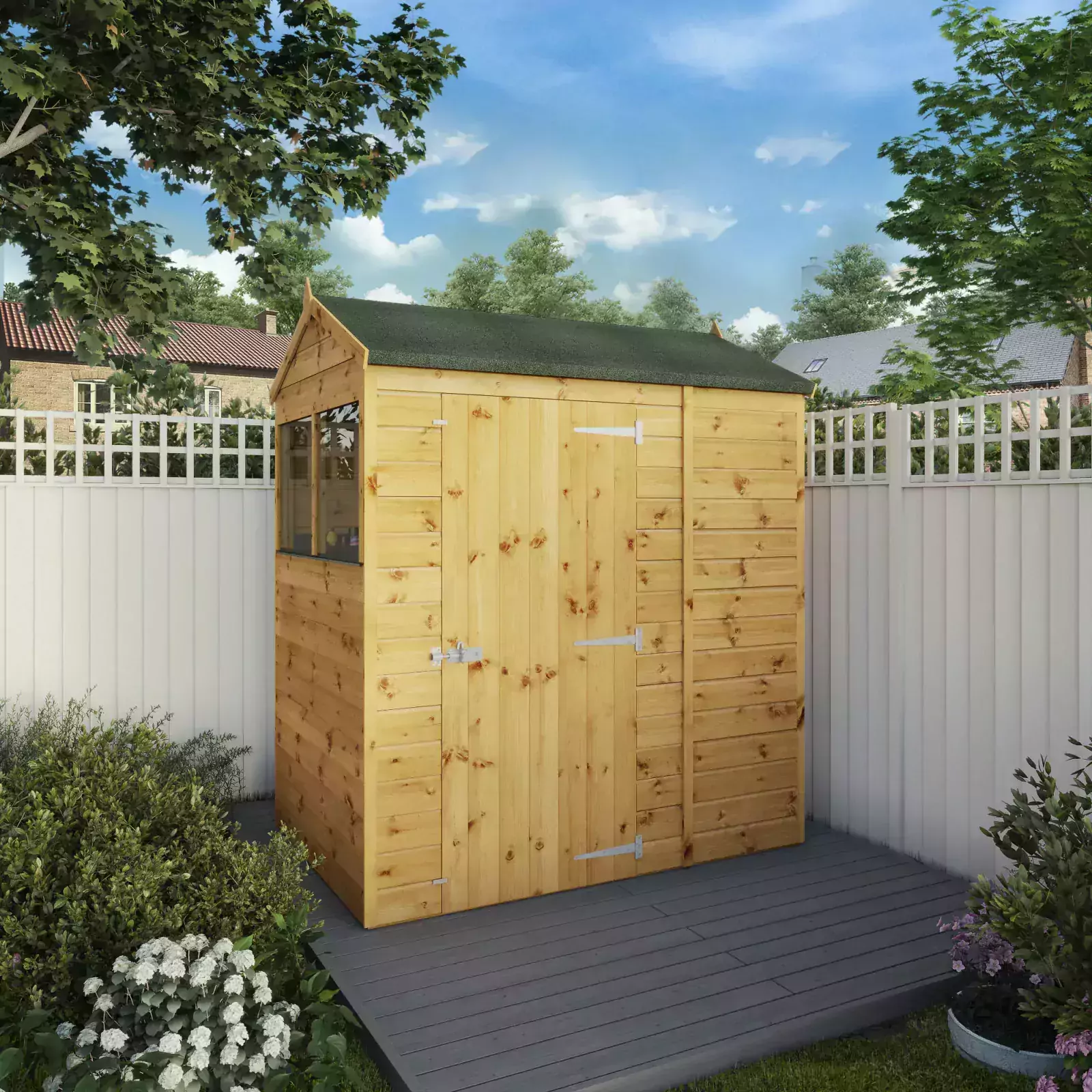 This 12mm shiplap apex shed offers a great storage space for your garden belongings. The shed has a 193cm ridge height and is supplied with 3 fixed styrene glazed windows which are 100% shatterproof and a safe alternative to glass. The 28x28mm frame and high quality shiplap tongue and groove board makes the shed strong and sturdy. These quality sheds have a strong braced single door with the roof and floor constructed of solid sheet materials giving the shed a durable structure. The roof is shielded from wood rot or fungal decay by the supplied mineral roofing felt.
