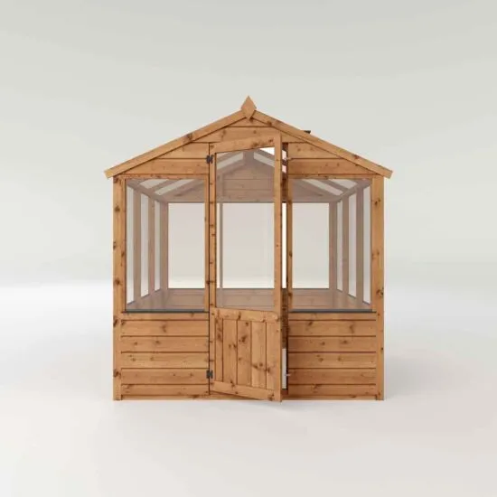 The Mercia 6’x6′ Traditional Timber Greenhouse is ideal for smaller gardens while providing a great space for growing a variety of flowers and vegetables throughout the year. The traditional and stylish greenhouse features UV resistant styrene glazing and an opening roof vent, creating a bright and well ventilated interior.