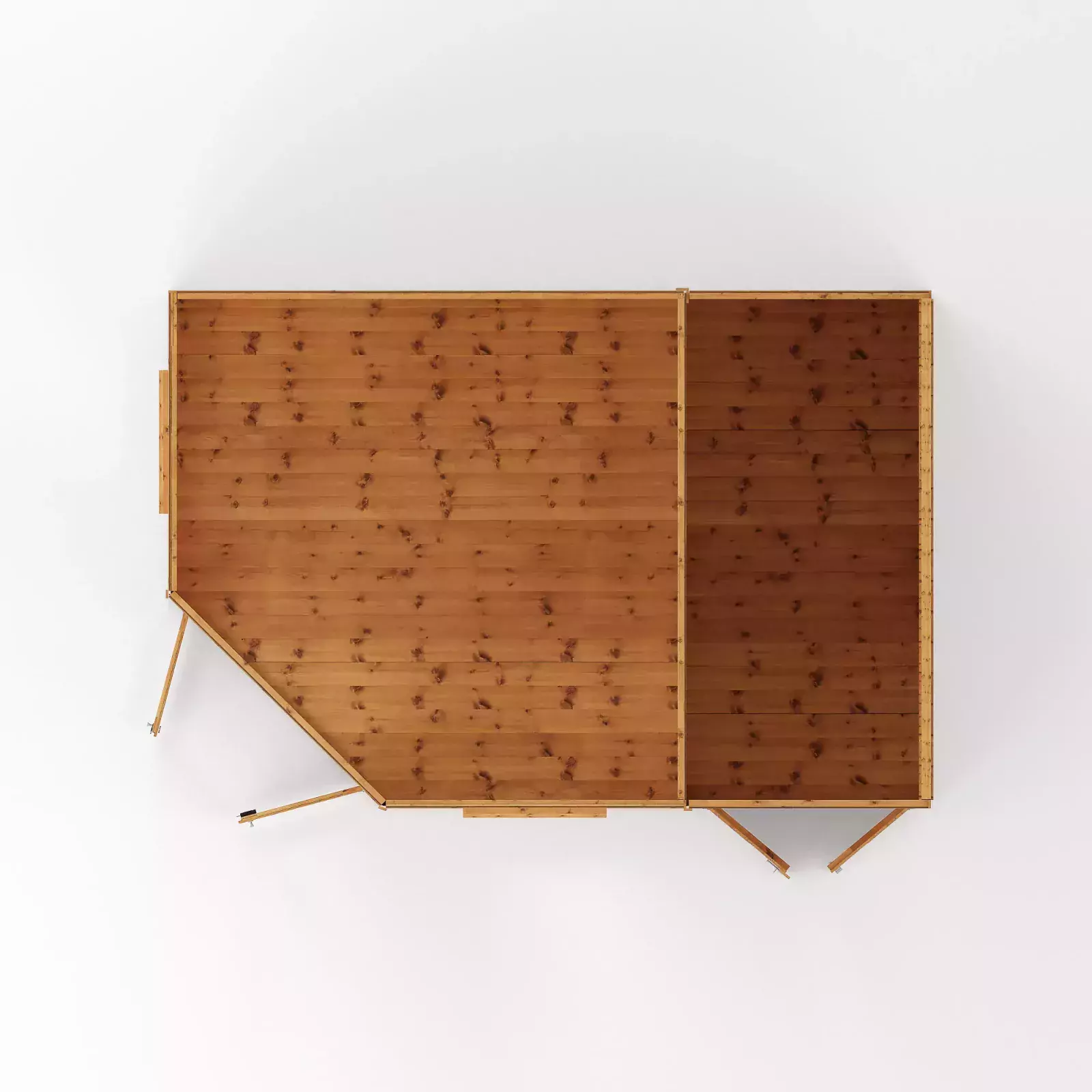 The Mercia 8’x 12′ Premium Corner Summerhouse and Side Shed is the perfect retreat to relax and unwind in your garden, all year round. Its unique pentagonal design fits neatly into the corner of your garden, helping you make the most of your space. It boasts a sturdy build with 12mm tongue and groove cladding to the roof and floor, dip treated timber, plus sand felt roofing for durability and resistance to the elements.