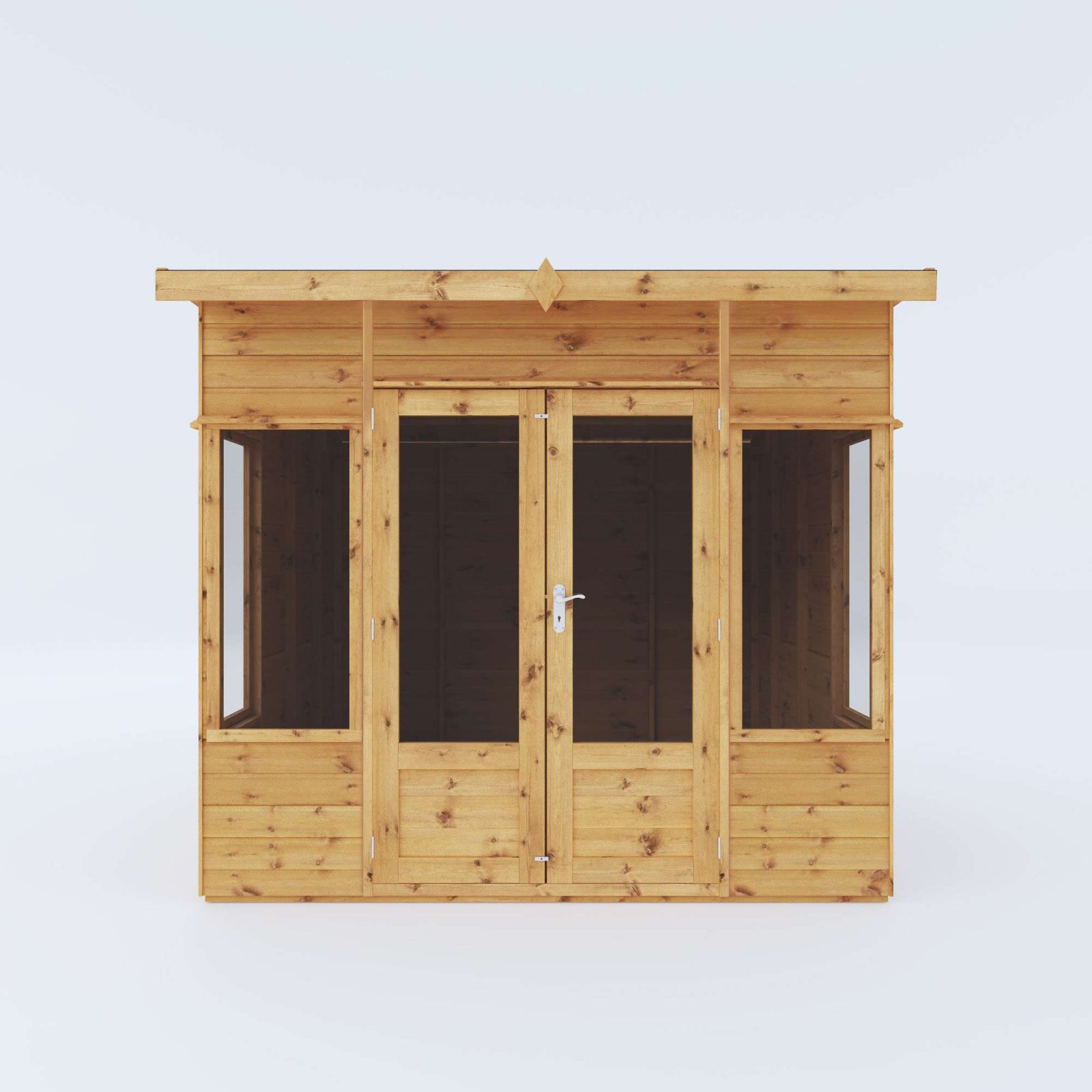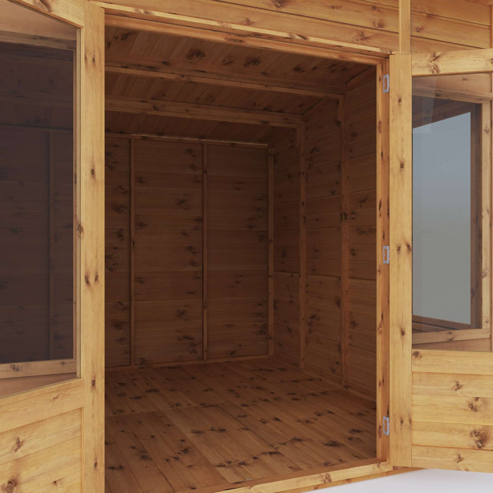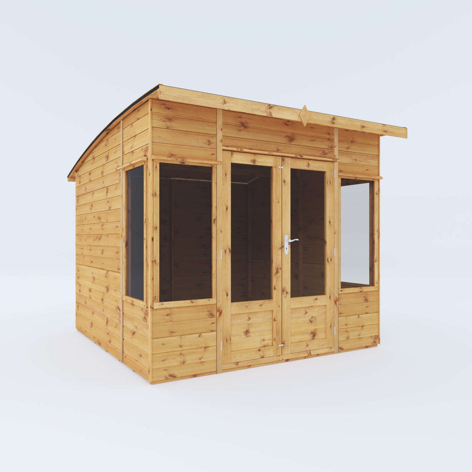 The Mercia 8’x 8′ Premium Helios Traditional Summerhouse – Curved Roof provides a large open space to relax in on a bright summer’s day.