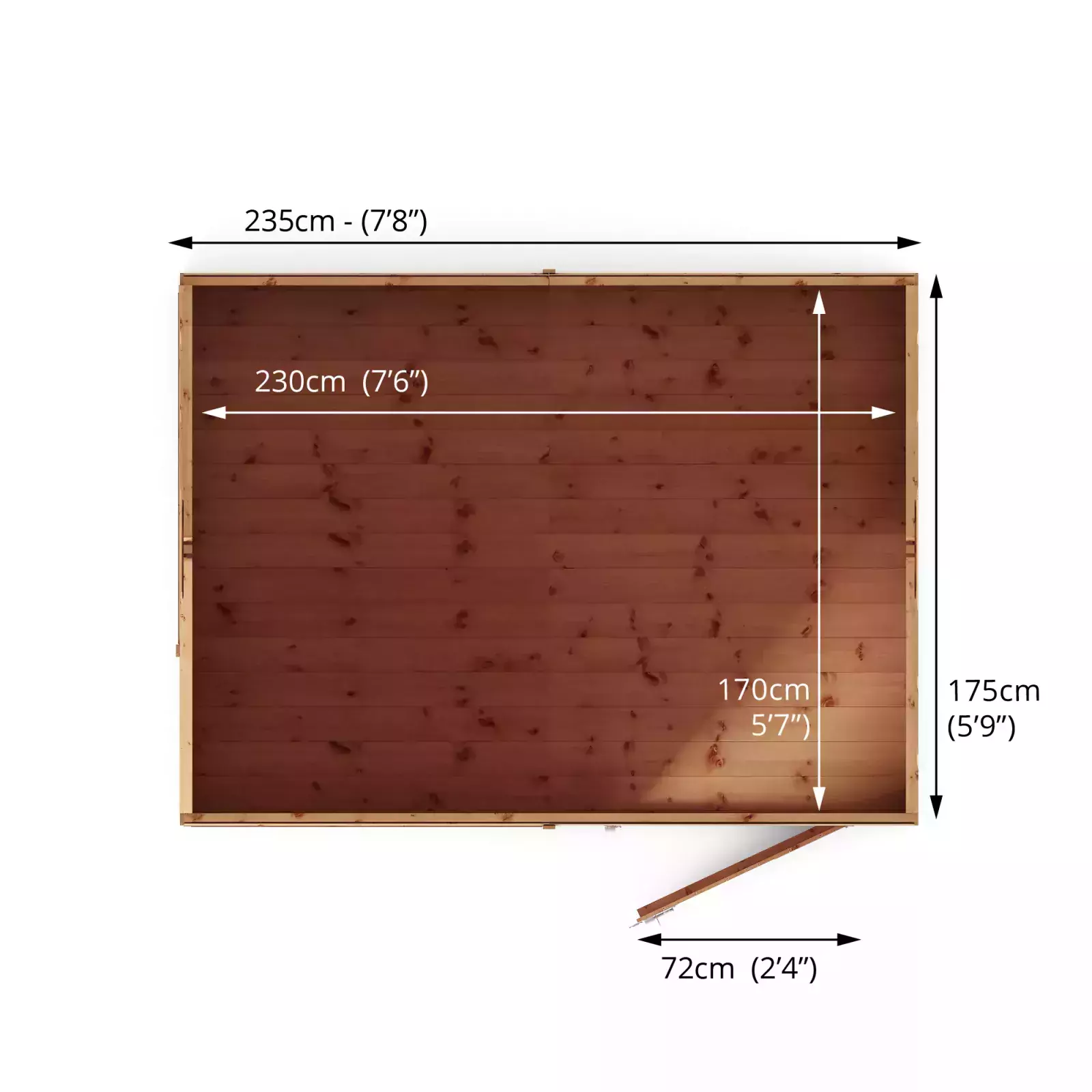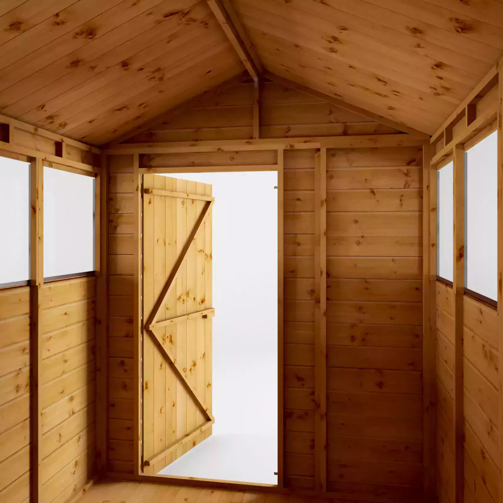This classic shed features a floor and roof constructed from interlocking tongue and groove boards. Providing a heavy-duty finish to the space, ideal for everyday general use and storage. Shatterproof Styrene glazed windows provide this shed with a bright interior. That is ideal for locating your stored items.
