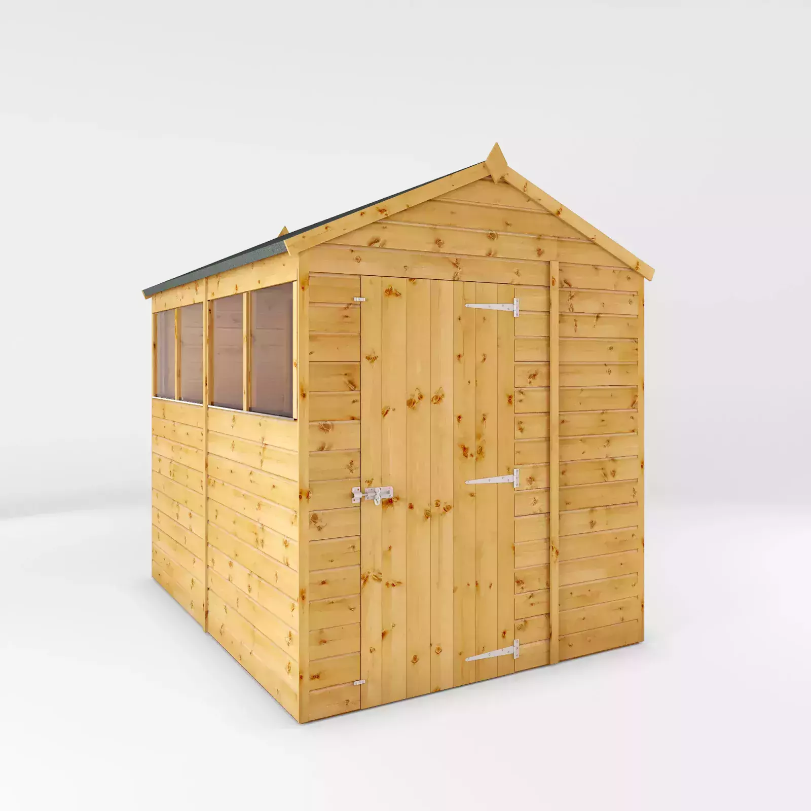 Perfect for use in gardens of all sizes, patios and terraces, this Mercia 8’x6′ Shiplap Apex Shed / 6’x8′ Reverse Apex Shed from Mercia is a great storage solution.