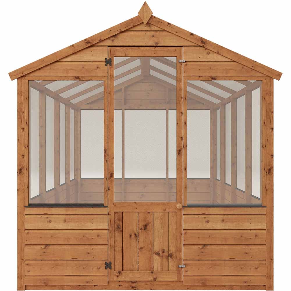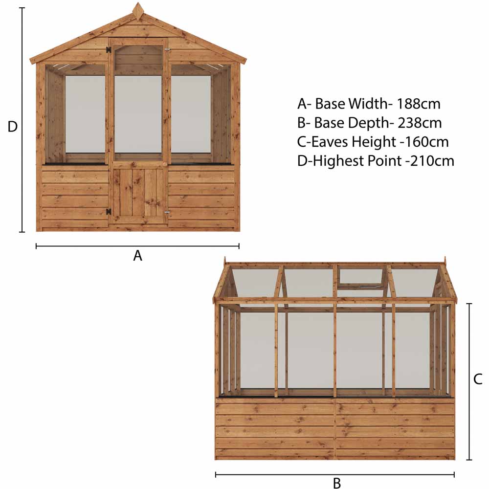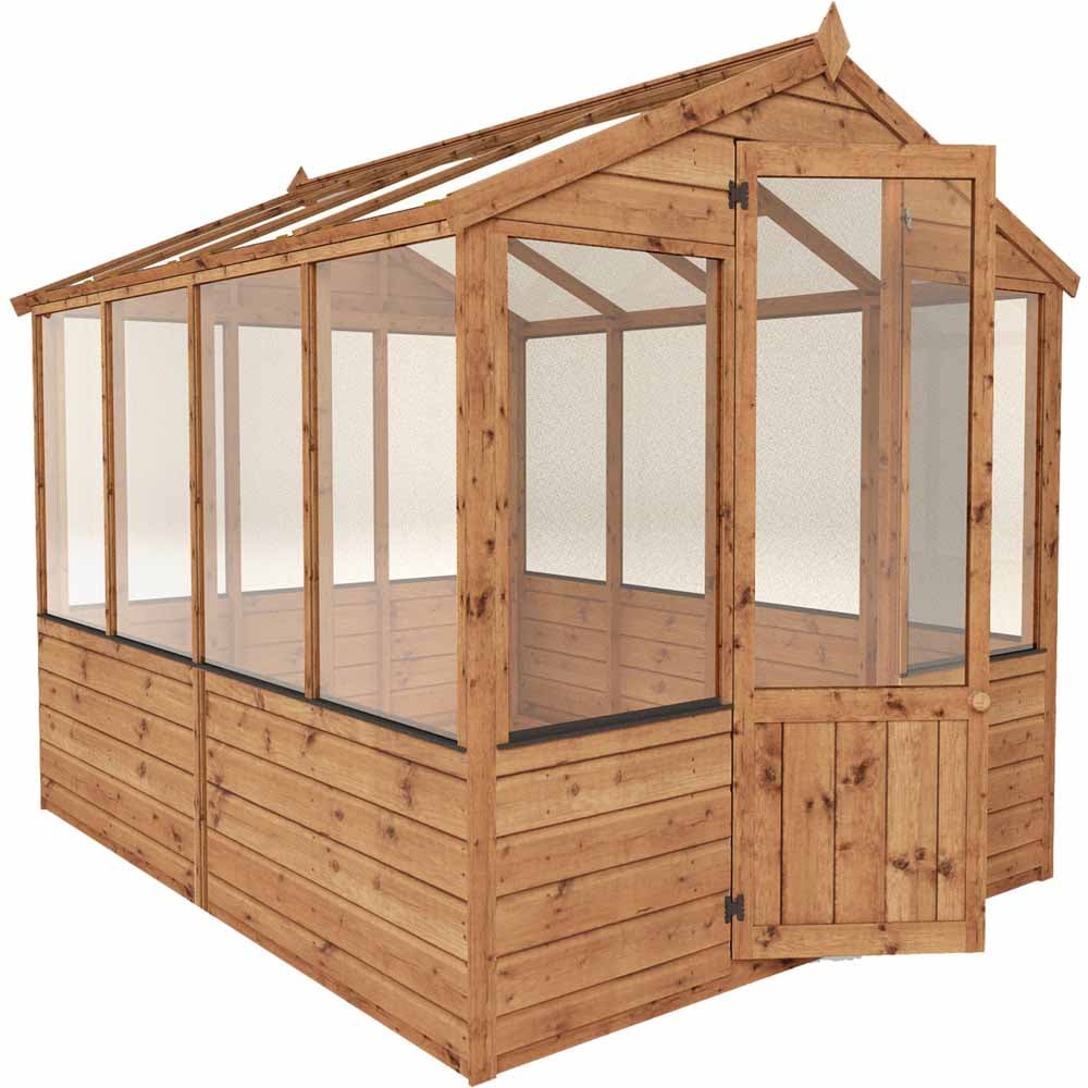 The Mercia 8’x6′ Traditional Timber Greenhouse is ideal for smaller gardens while providing a great space for growing a variety of flowers and vegetables throughout the year. The traditional and stylish greenhouse features UV resistant styrene glazing and an opening roof vent, creating a bright and well ventilated interior.
