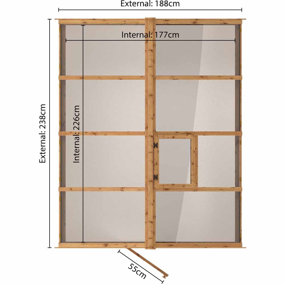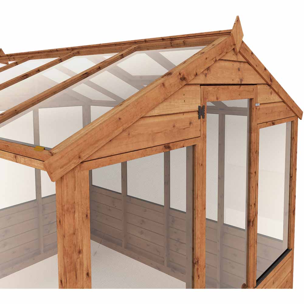 The lower section of the greenhouse walls are constructed using premium horizontal interlocking tongue and groove boards with a shiplap profile. The shiplap profile includes a protective and aesthetically pleasing lip to create a strong, weatherproof panel. Complete with thick wooden framing to support the cladding internally, this building offers a rigid and long-lasting structure.