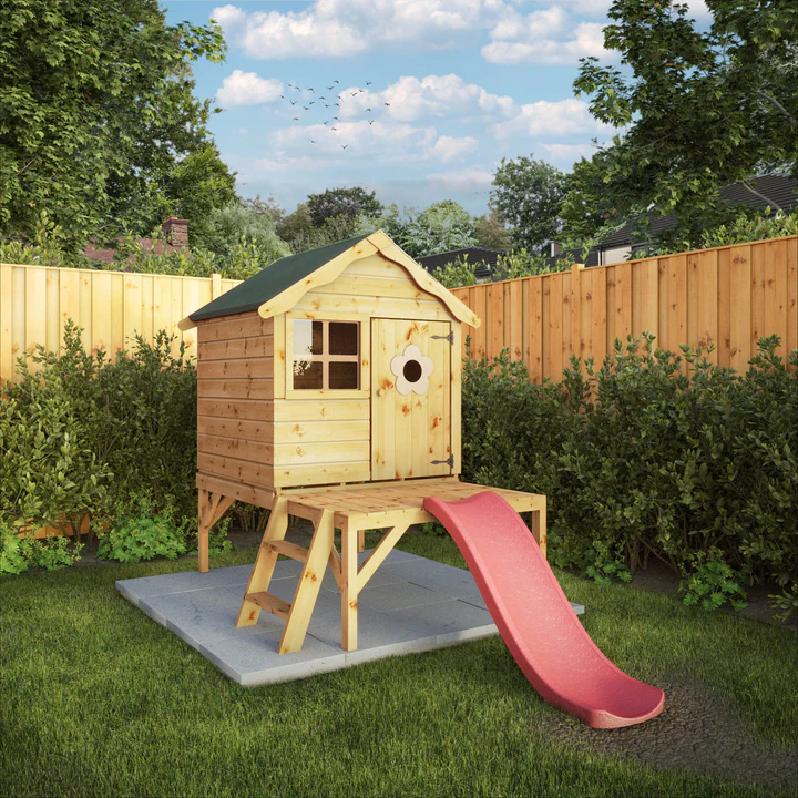 From the raised platform a sturdy ladder provides a safe exit when its time for tea. The apex felted roof will keep water running off the top and with our 10 year Anti Rot promise, will keep your child happy throughout childhood.