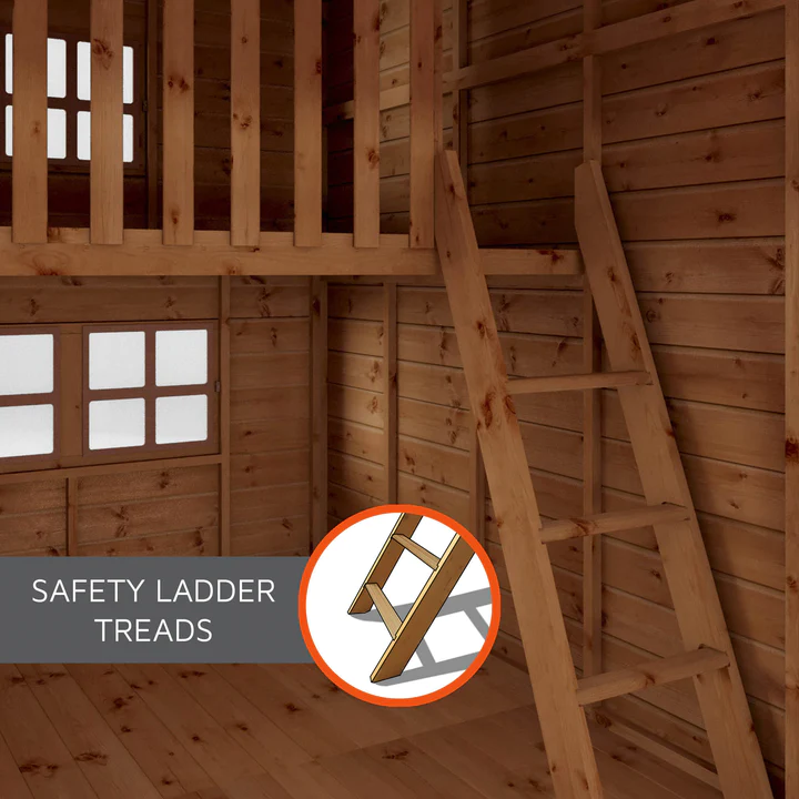 From the raised platform a sturdy ladder provides a safe exit when its time for tea. The apex felted roof will keep water running off the top and with our 10 year Anti Rot promise, will keep your child happy throughout childhood.