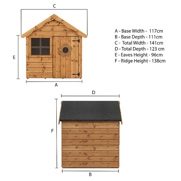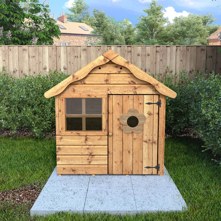 This walls of this playhouse have been constructed using high quality interlocking shiplap tongue and groove cladding for a robust and durable build. This interlocking design prevents water ingress and creates a rigid structure. The roof and floor are made from quality solid sheet board material, constructed of several layers of compacted orientated strands.