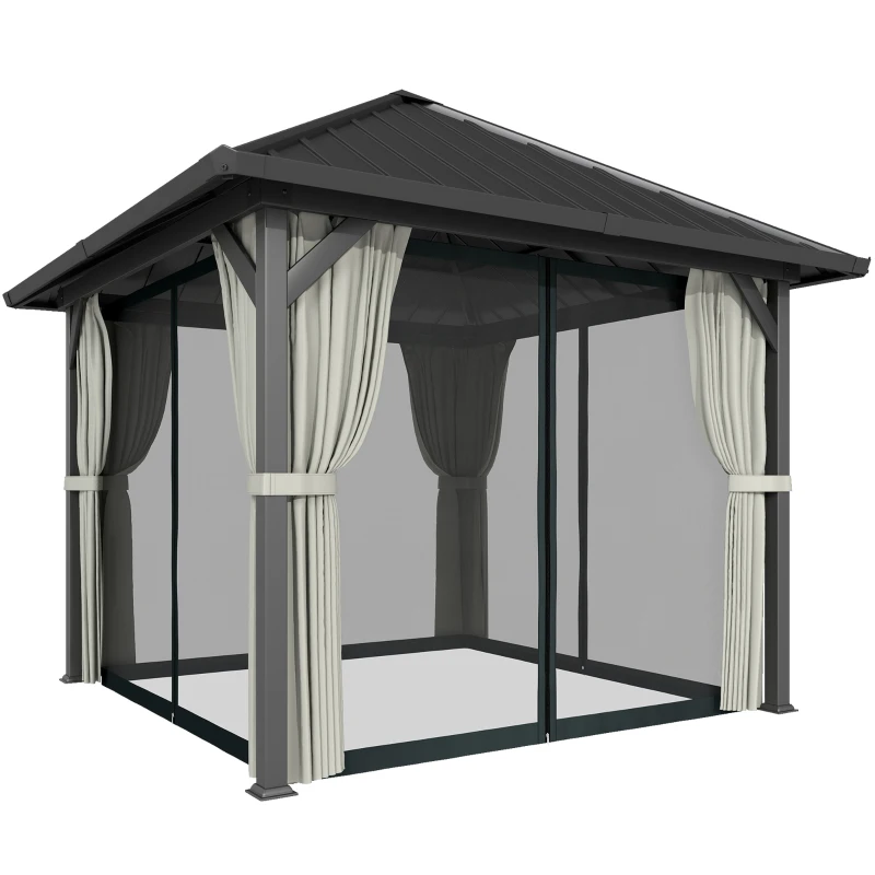 Transform your garden into a chic retreat with the Outsunny 10’x 10′ Hardtop Metal Hardtop Gazebo with Galvanised Steel Roof – Black