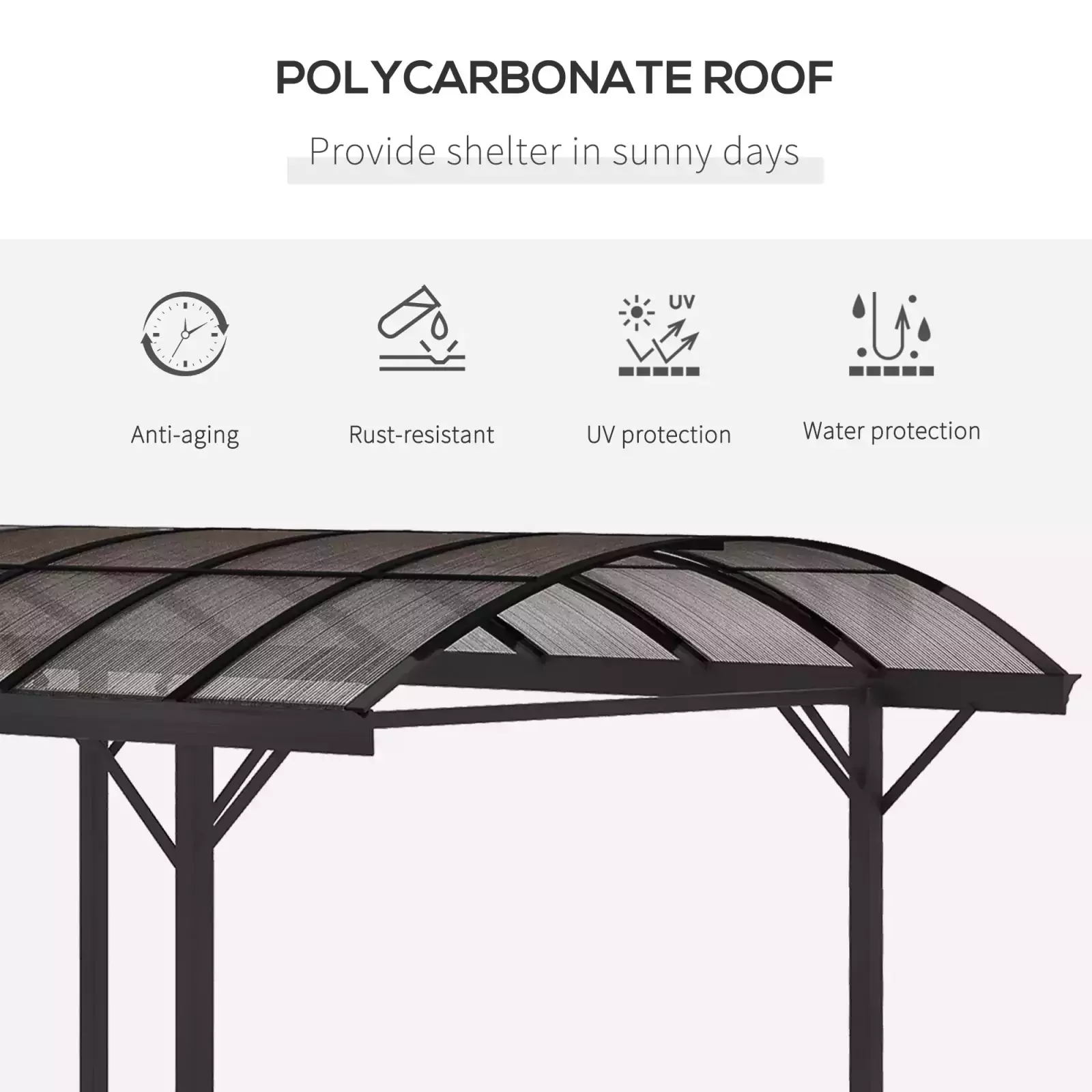 Polycarbonate roof to protect underneath from the sunlight and UV rays