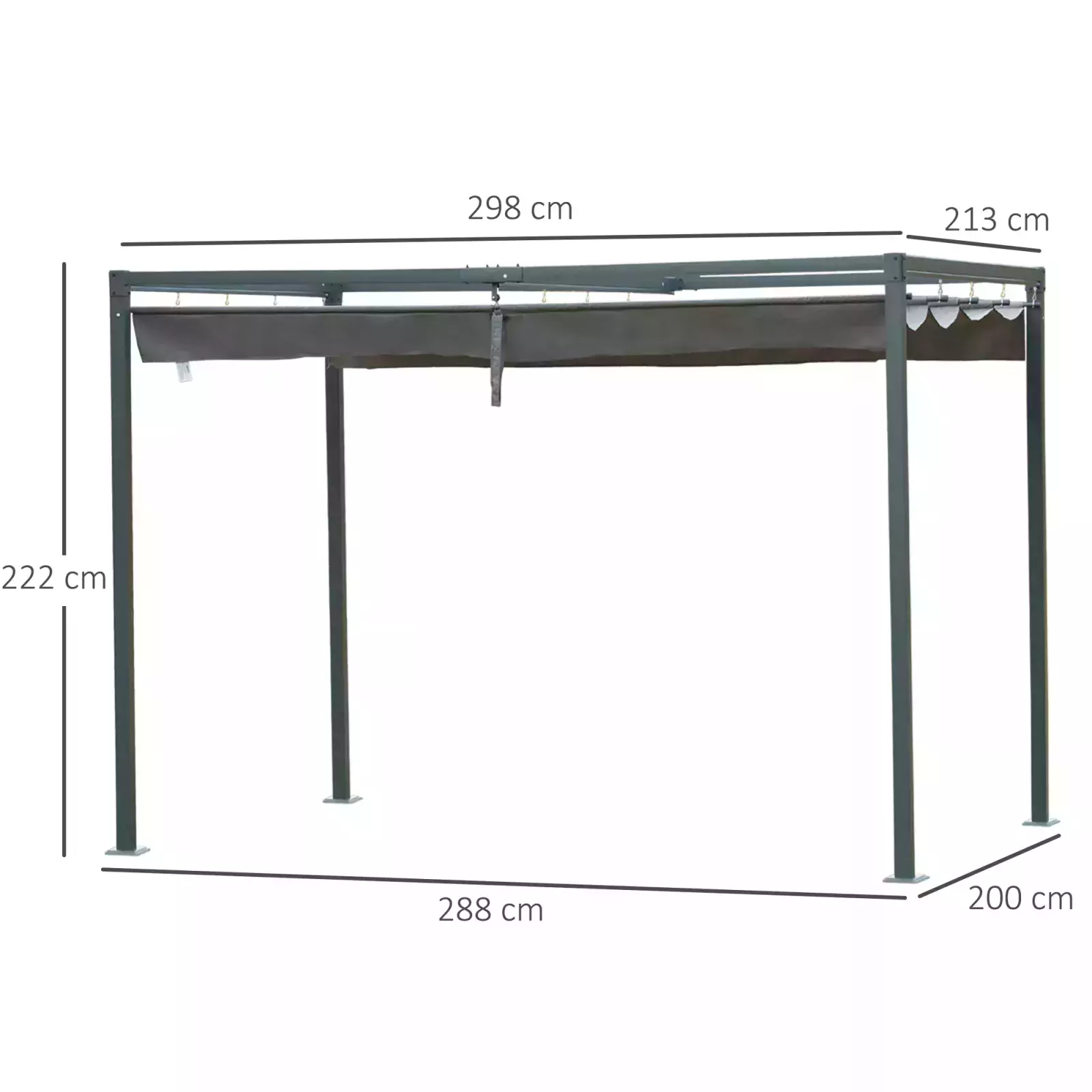 DIMENSIONS: 222H x 298L x 213Wcm. Canopy: 290L x 206Wcm.
