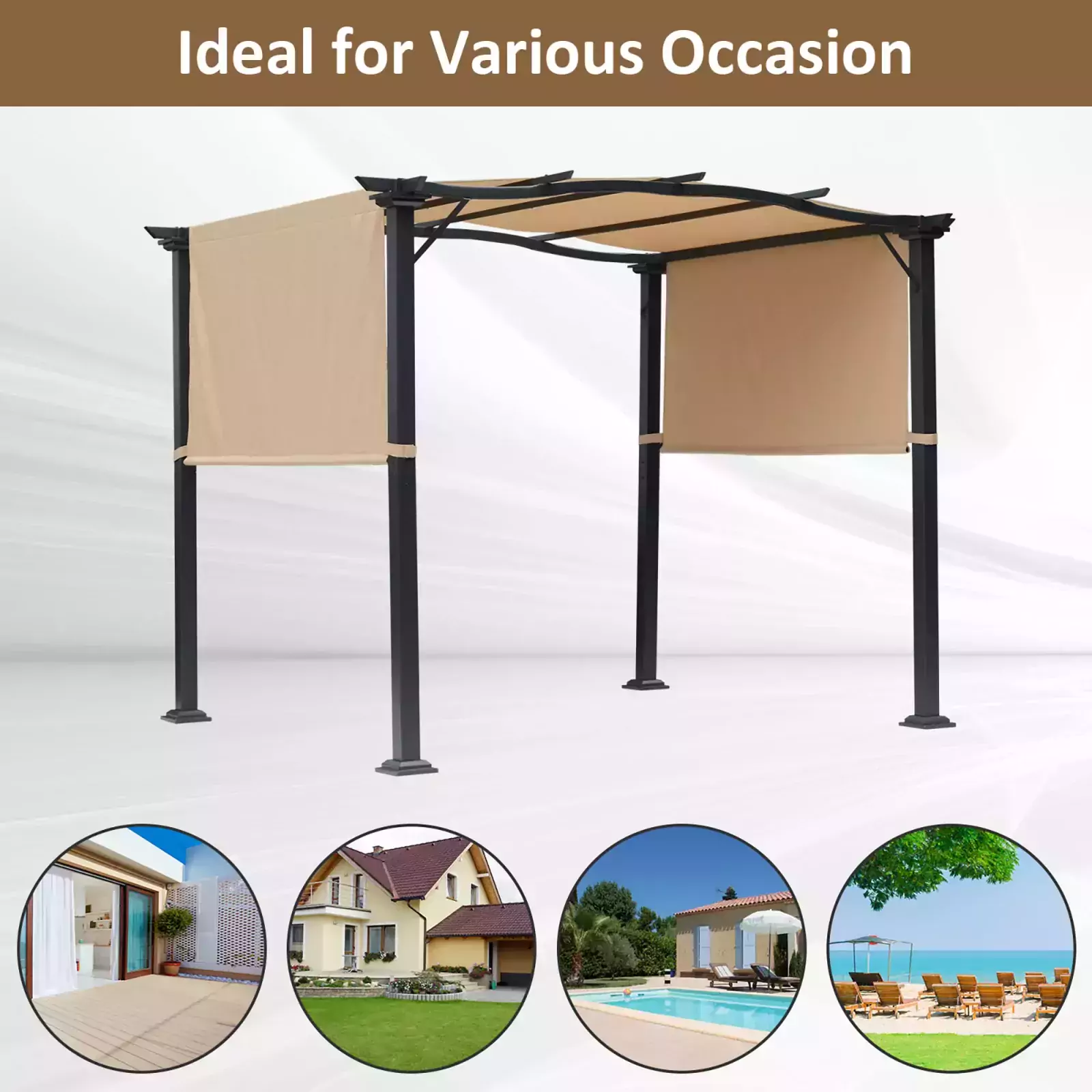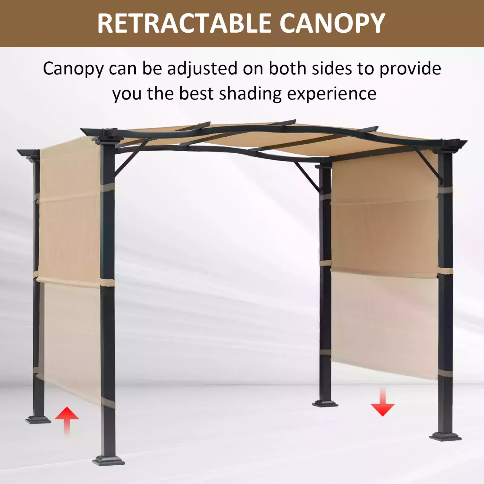 RETRACTABLE CANOPY: Easy to adjust and fix to a position on either side – this metal pergola protects you from the sun at any time of day.