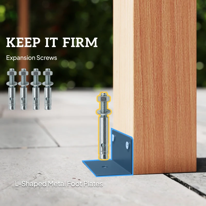 Comes with L-shaped metal foot plates and expansion screws for stability in up to level 7 winds