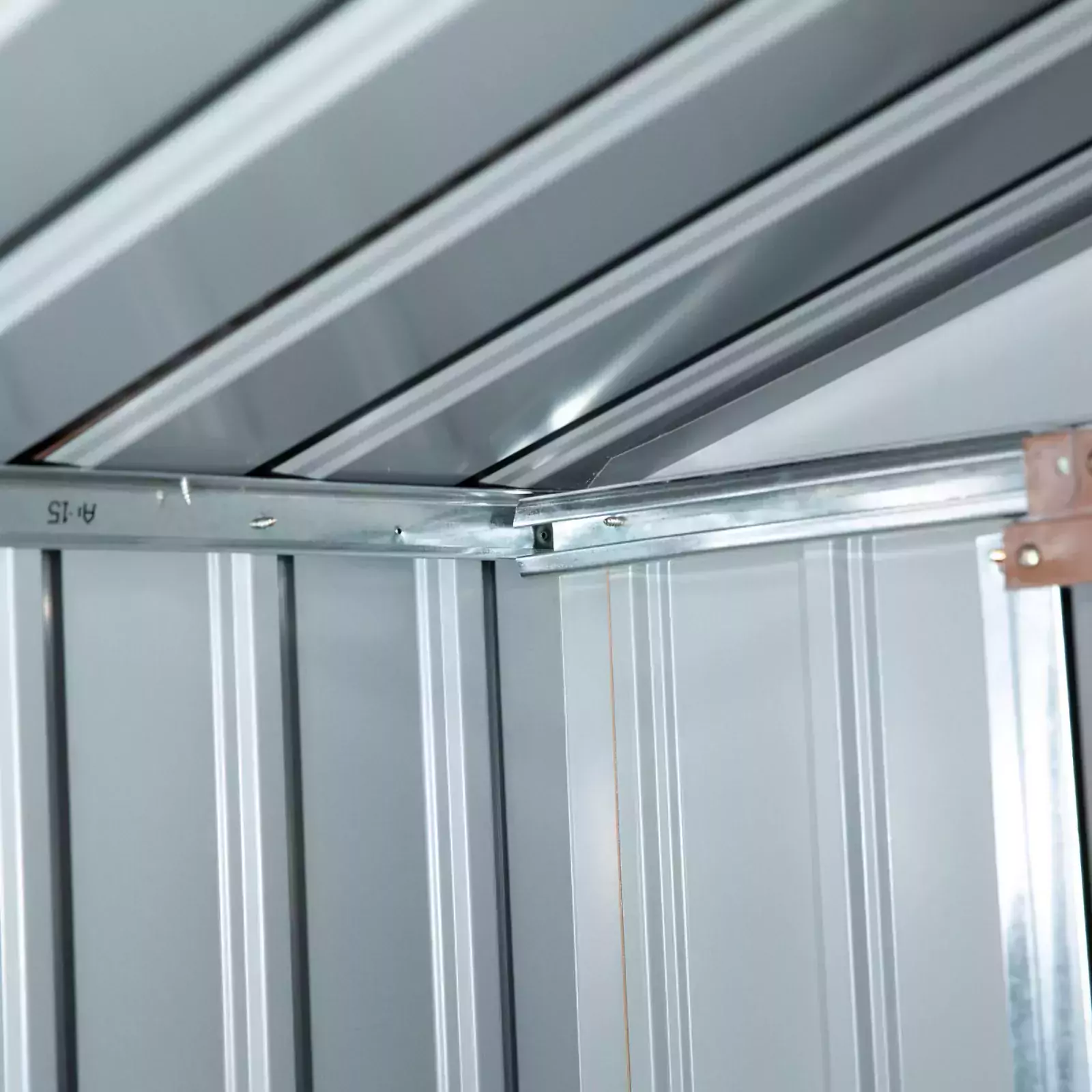 Sloping roof for water to roll to floor, helping to prevent rust build-up