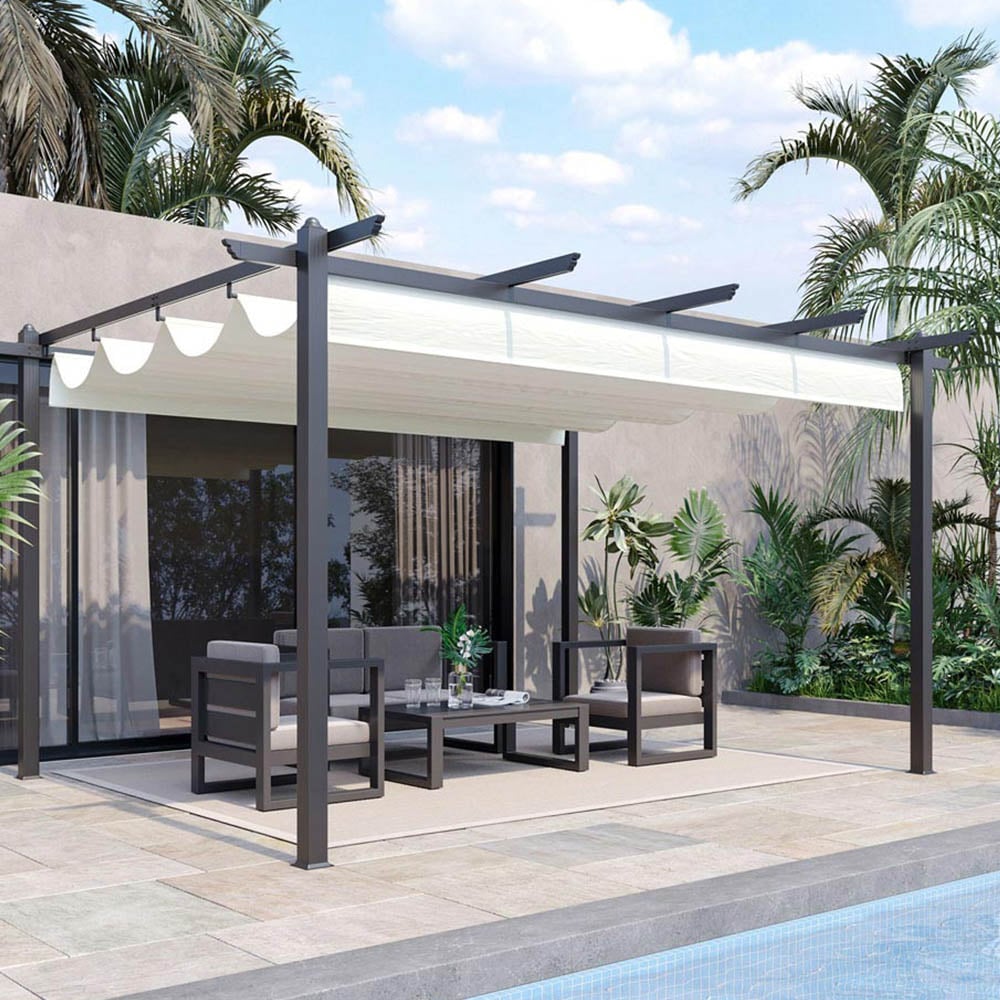 WIDE USAGE: An outdoor pergola with retractable roof, provides lots of space for you to enjoy leisure time with your family or friends. Ideal for backyard, lawn, garden and more outdoor areas.