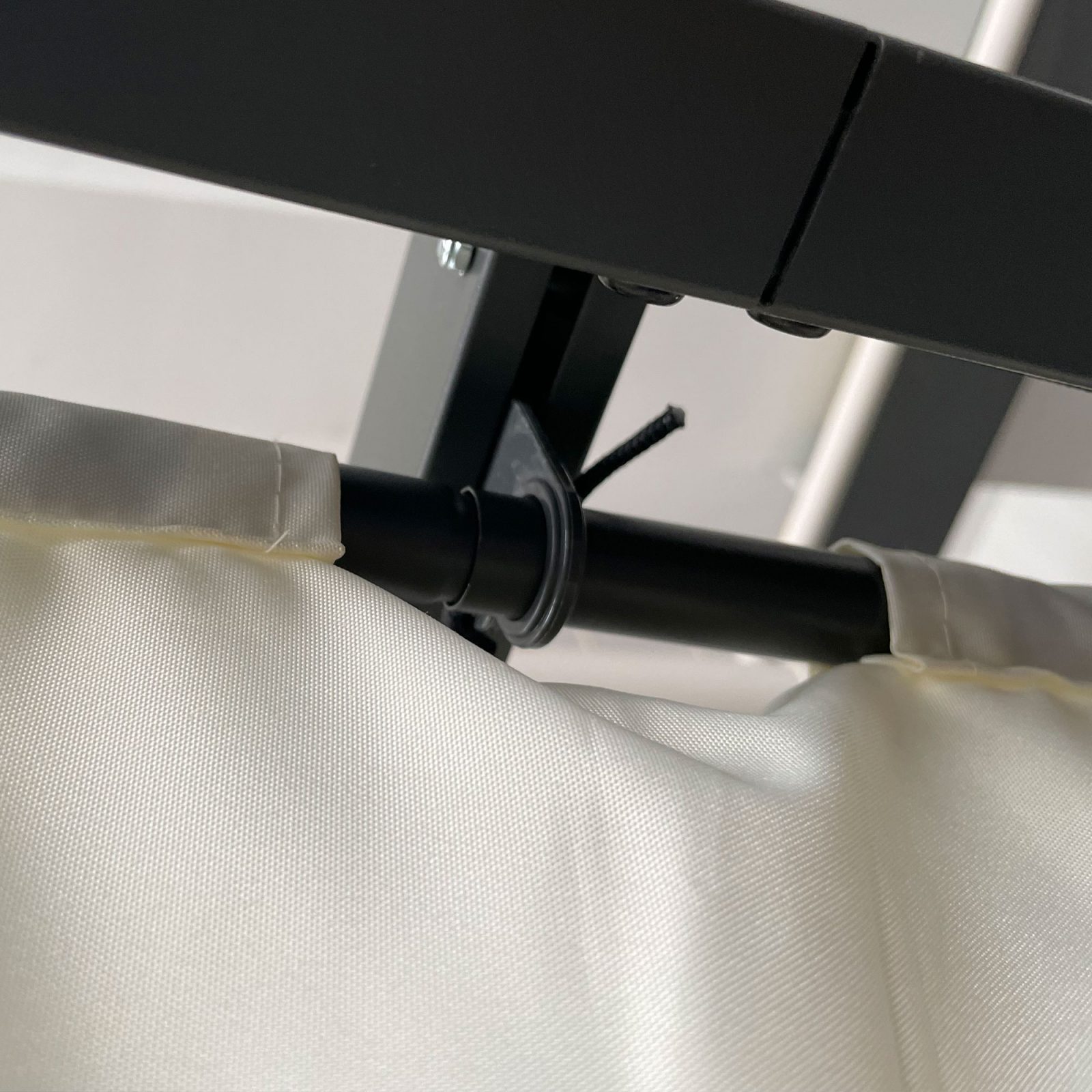 The aluminium structure is strong, with ground pegs included to keep attached to the floor. The pergola canopy top can be moved to a position so protect you from the shade at various angles. Grommet holes for water drainage. Enjoy your outdoors better than ever before.