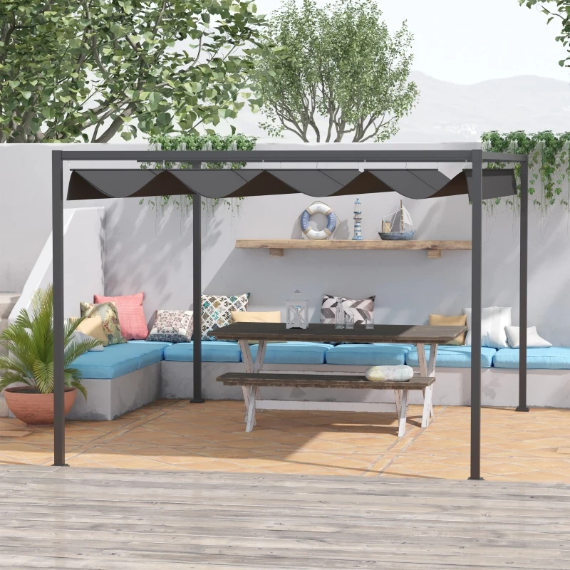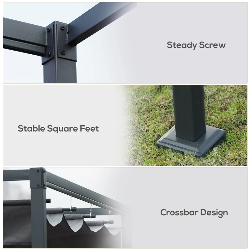 Create a shady and cool spot in the garden, anytime. Opt for this OutSunny 13’x10′ Metal Retractable Pergola with Sun Shade – Grey for a winner this season.