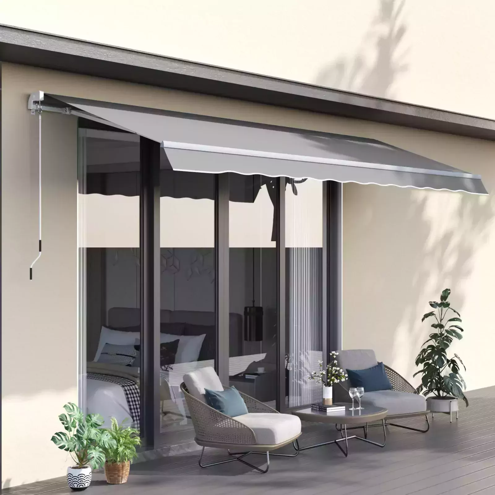With a thick sun-shielding canopy fixed on an aluminium frame, this Outsunny 13’x8′ Manual Window Awning -Light Grey will give you all the shade you need this season.
