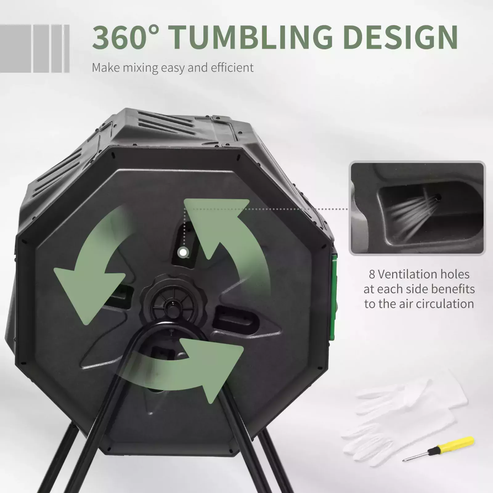 At-home and healthy compost made the easy and efficient way, thanks to this Outsunny 160L Tumbling Dual Plastic Compost Bin – Black