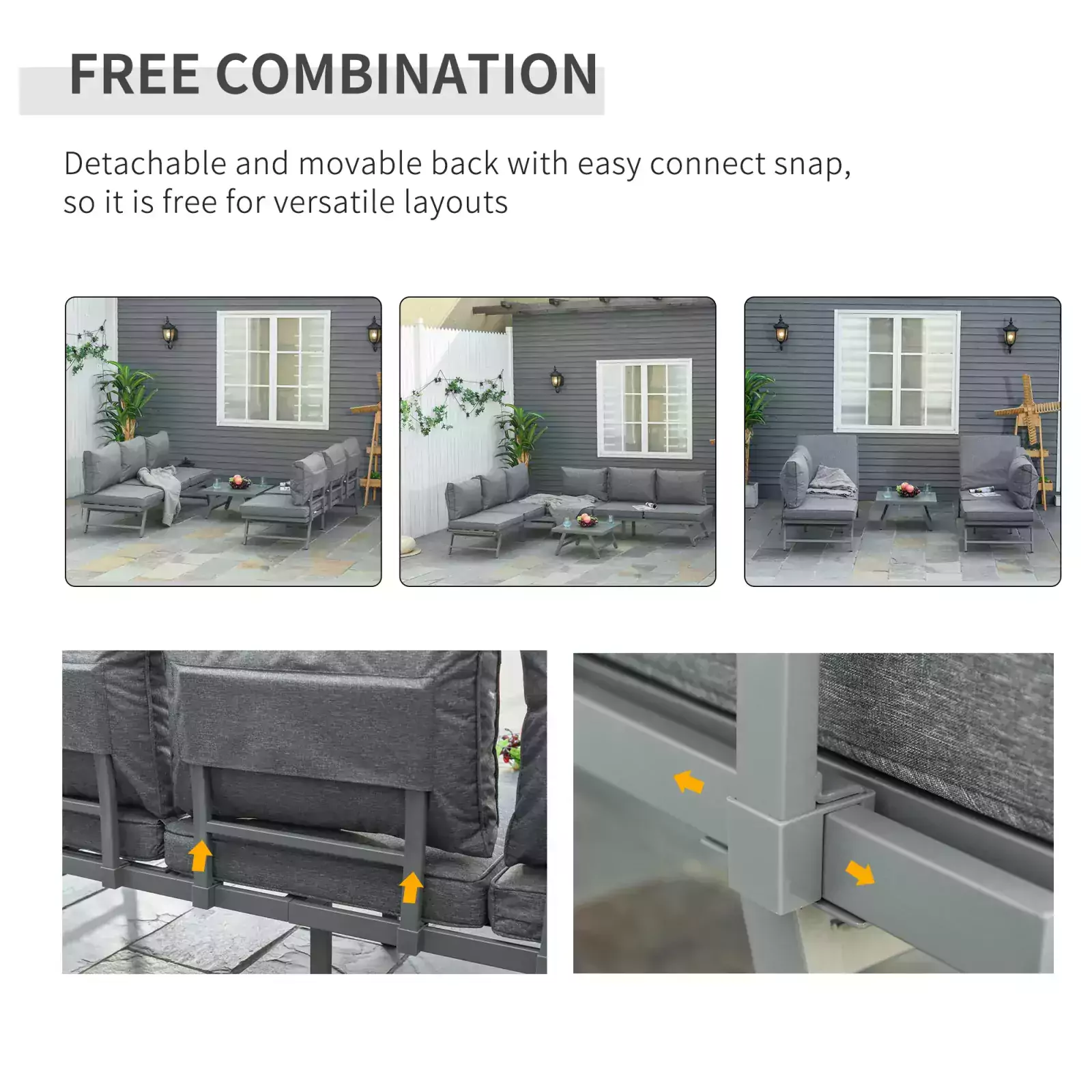 - CONVERTIBLE SOFAS: Both feature four-level adjustable back, transforming into a lounger to switch up the layout and relaxation style. Backs can also be detached and moved into a different position.