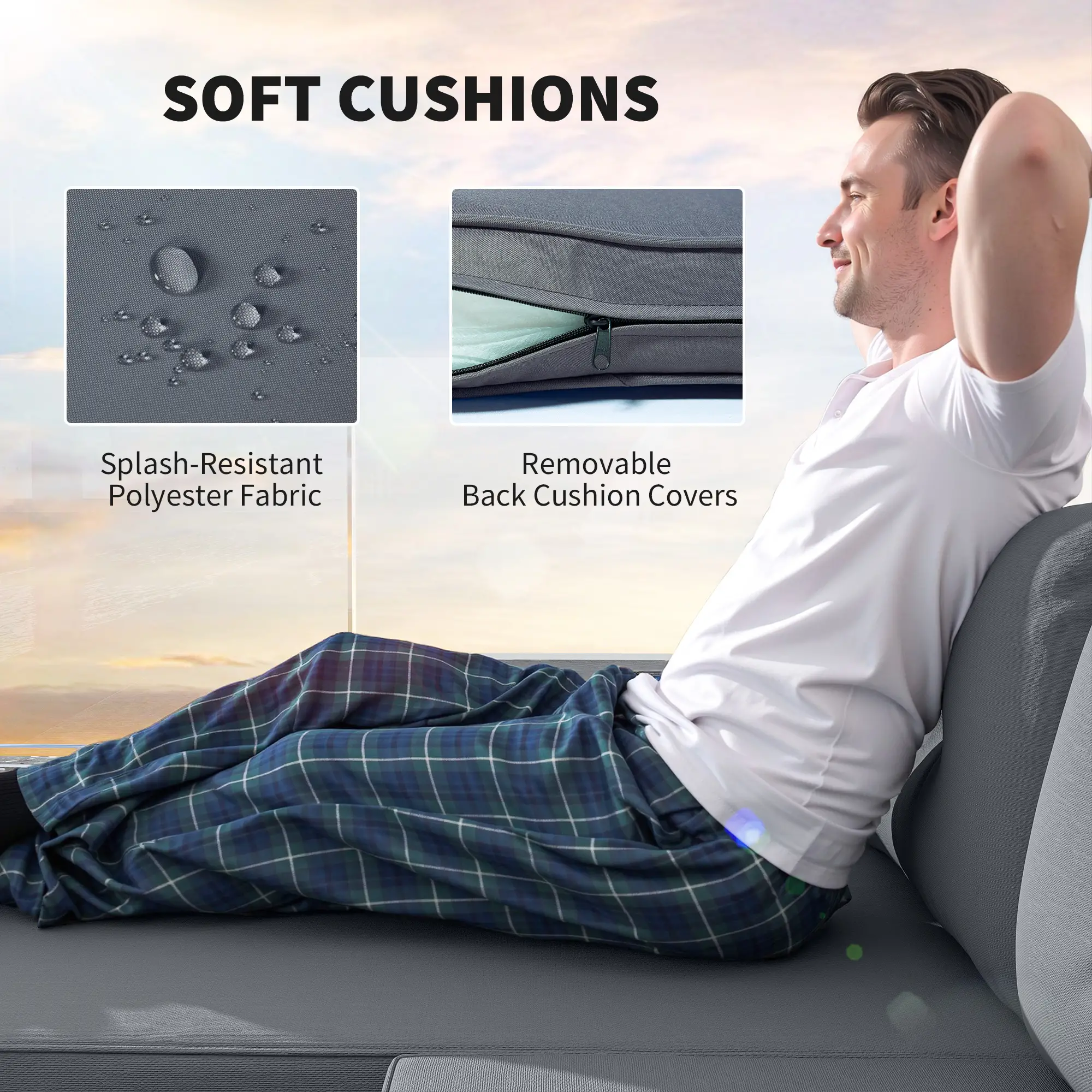 Back Cushions with hidden zippers simplify washing and maintenance