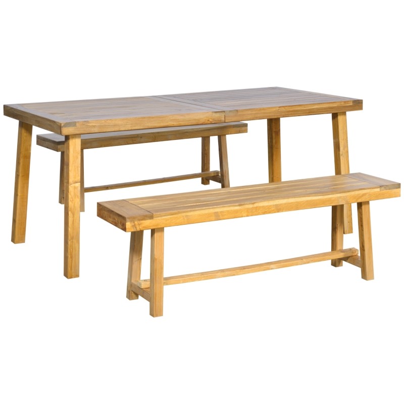 The Outsunny 3 Piece Timber Garden Bench Set comes with a four-person table and two benches: holding up four people. Each piece is made from acacia wood: strong and sturdy, with a varnish coating for light protection. The wood retains the natural character: beautiful and sleek.
