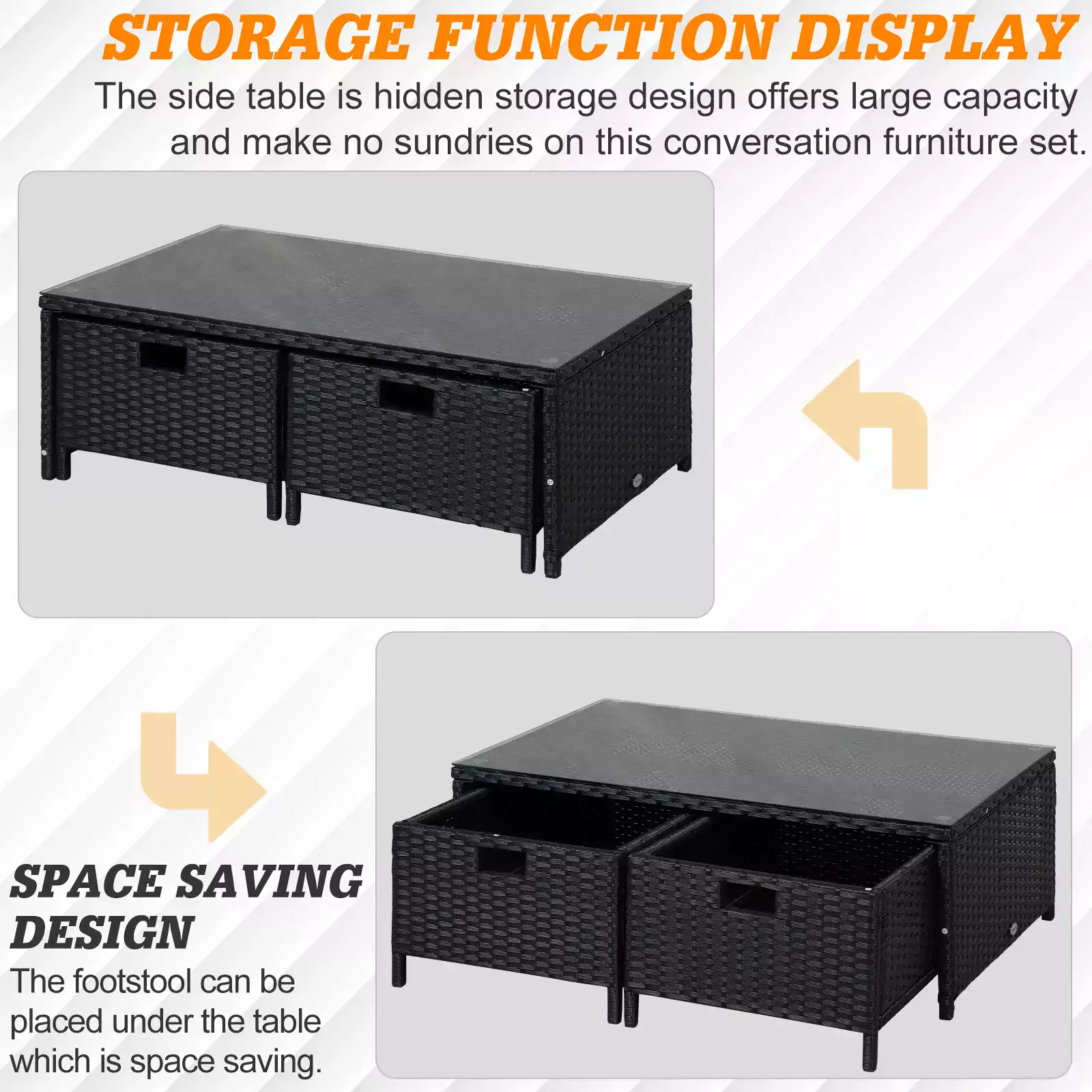 - MULTIPLE STORAGE COMPARTMENTS: One placed in the tall corner table, and two drawers in the coffee table giving you lots of storage room within easy reach, allowing you to keep the area clean and tidy. THICK CUSHIONS: Placed on the seats and backs of the sofas and so you can sit comfortably all day long. Machine washable covers are resistant to light water and stains.