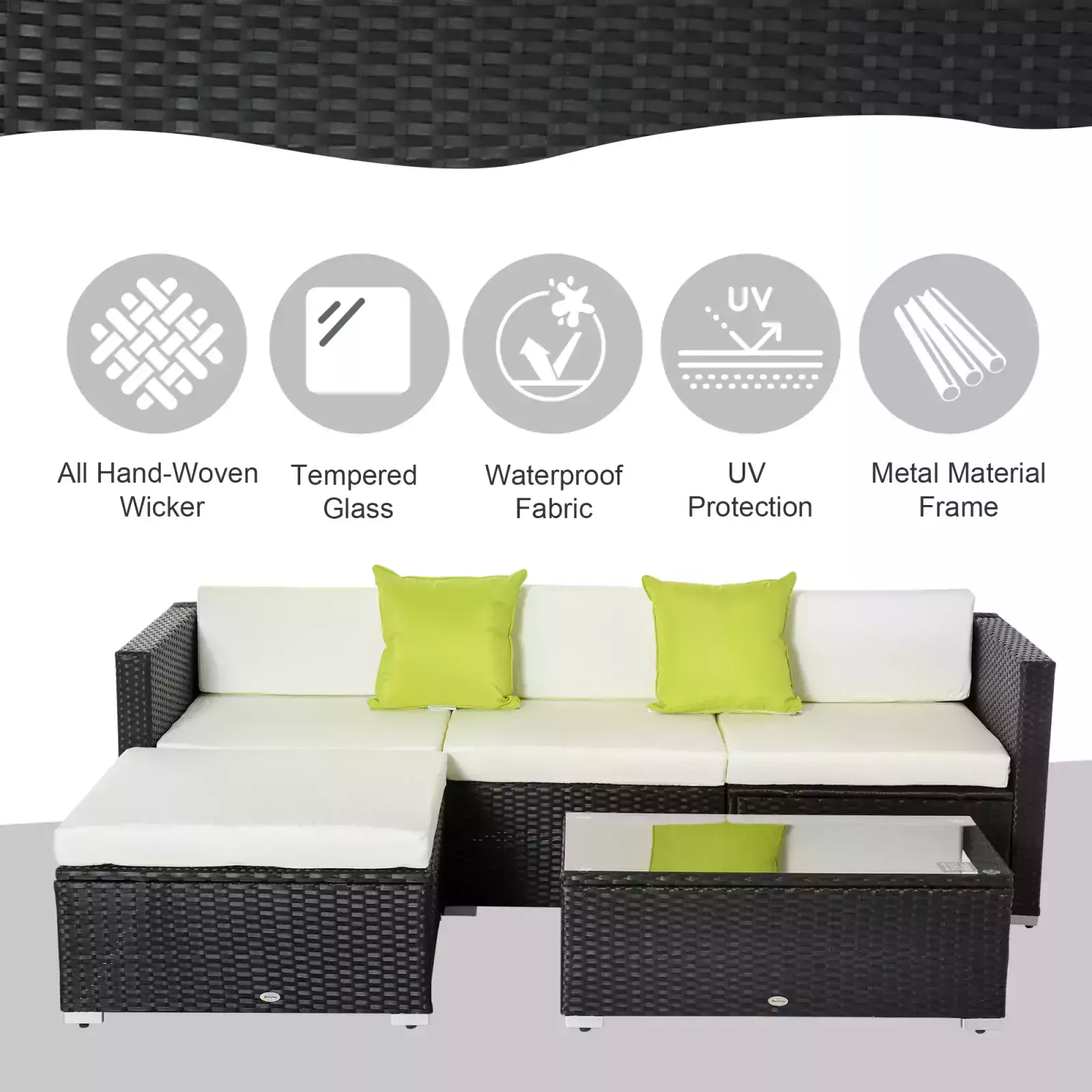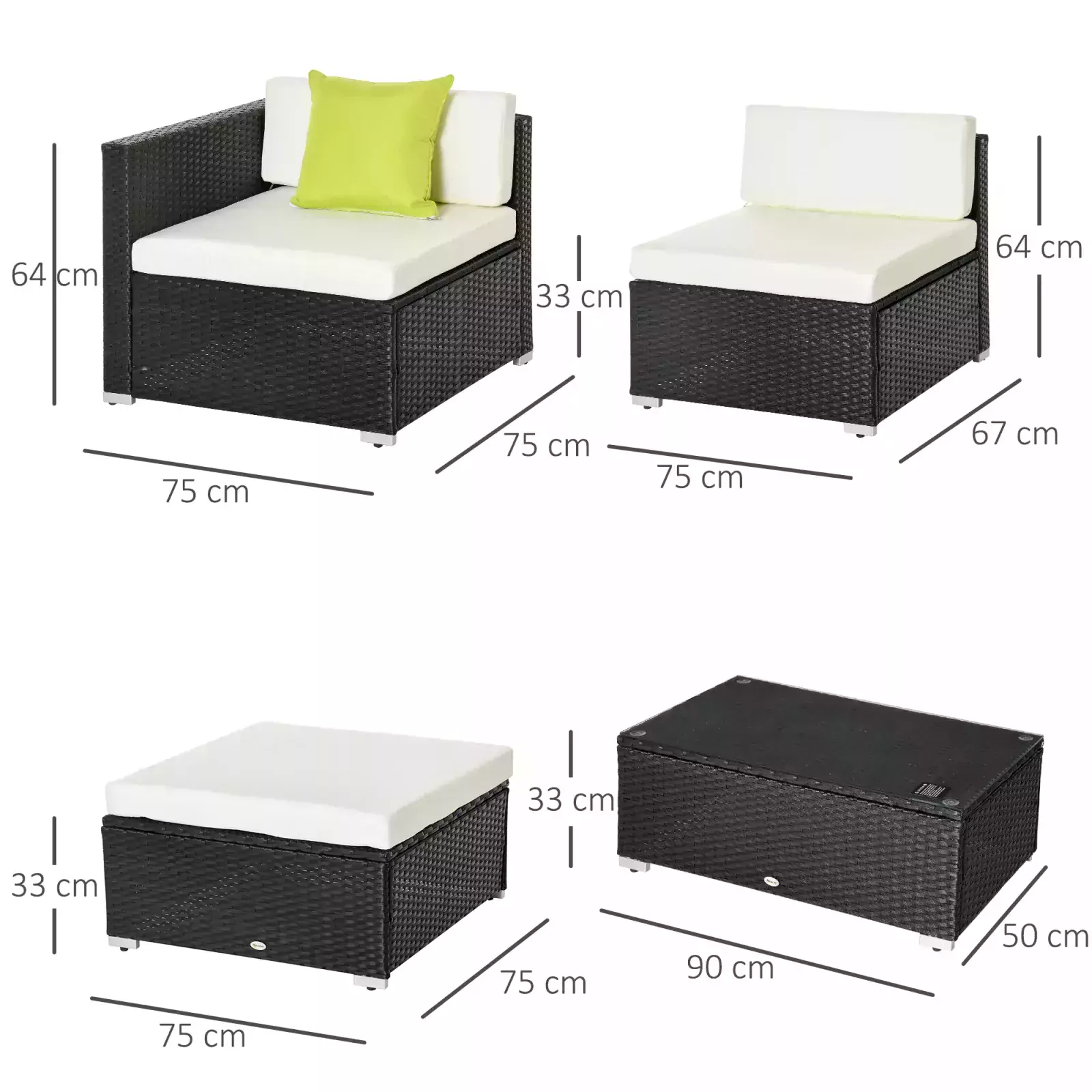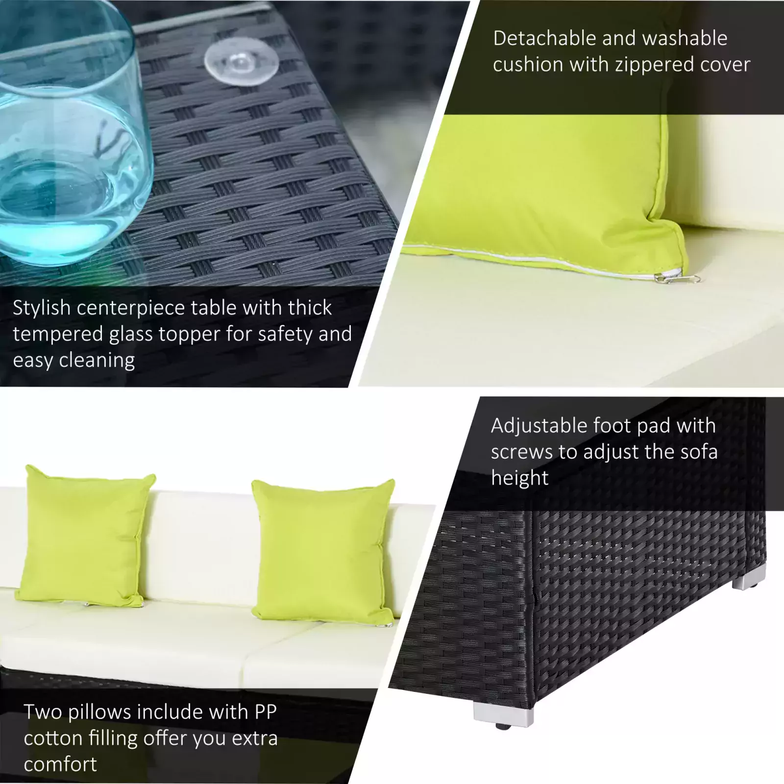Brighten your backyard with Outsunny 4-Seater Garden Rattan Combo Patio Set – Black and make the outdoors just as inviting as your indoors. Oftentimes, due to uncomfortable seating or simply a lack of furniture, many outdoor environments go underused or ignored completely. Change all that with a simple, in one of our designer garden rattan furniture set. Decorative and functional, the rattan sofa set creates an inviting setting you’ll want to use for years.