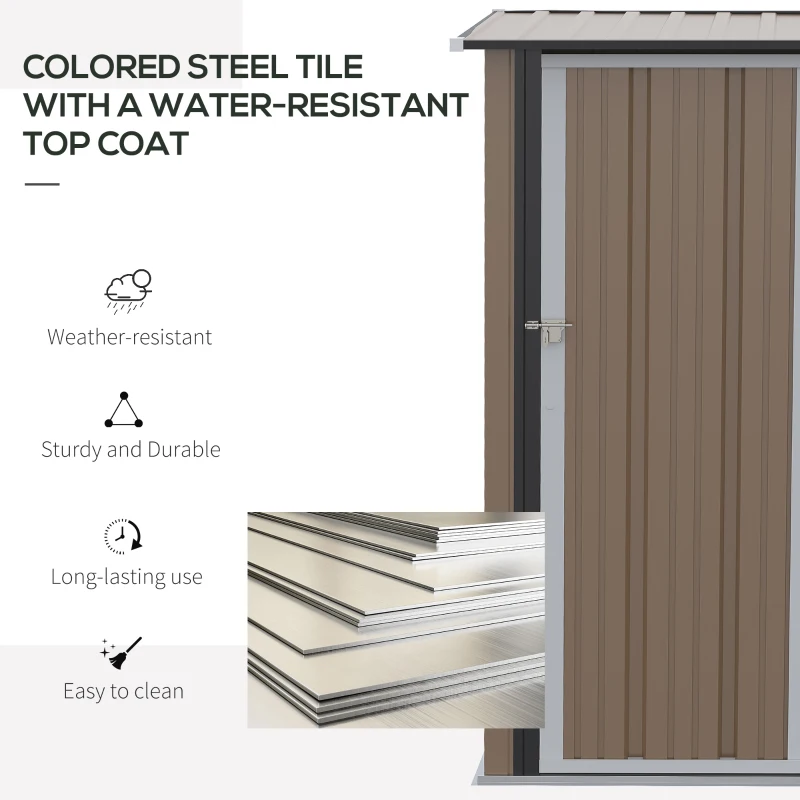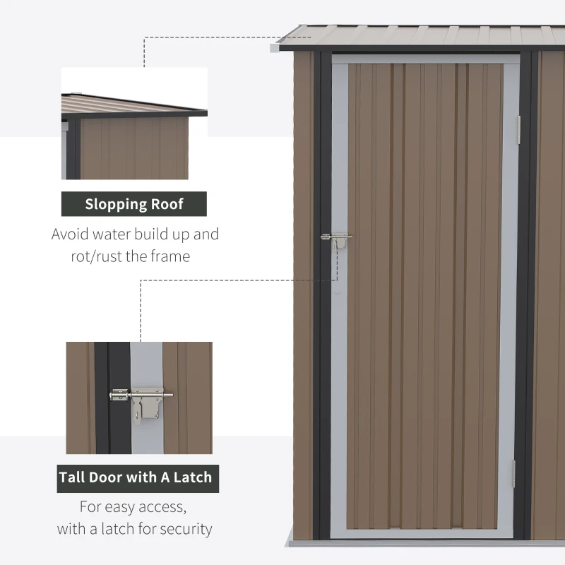 Keep your gardening tools tidy and protected with the Outsunny 5’x3′ Metal Pent Garden Shed – Brown.