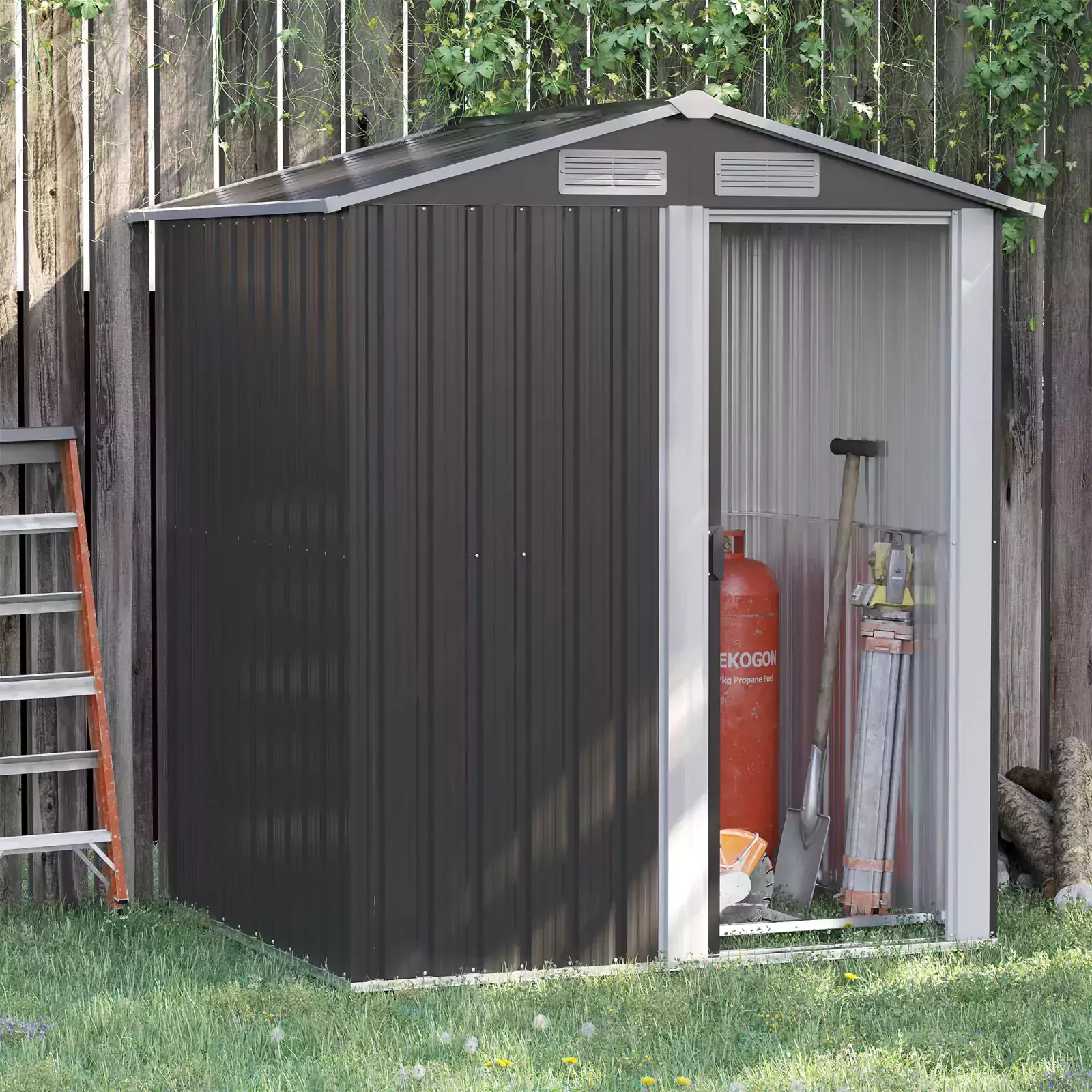 The OutSunny 5×4 Metal Apex Garden Shed with Foundation Grid- Anthracite is ideal for cost conscious ‘consumers’ without compromising durability and space.