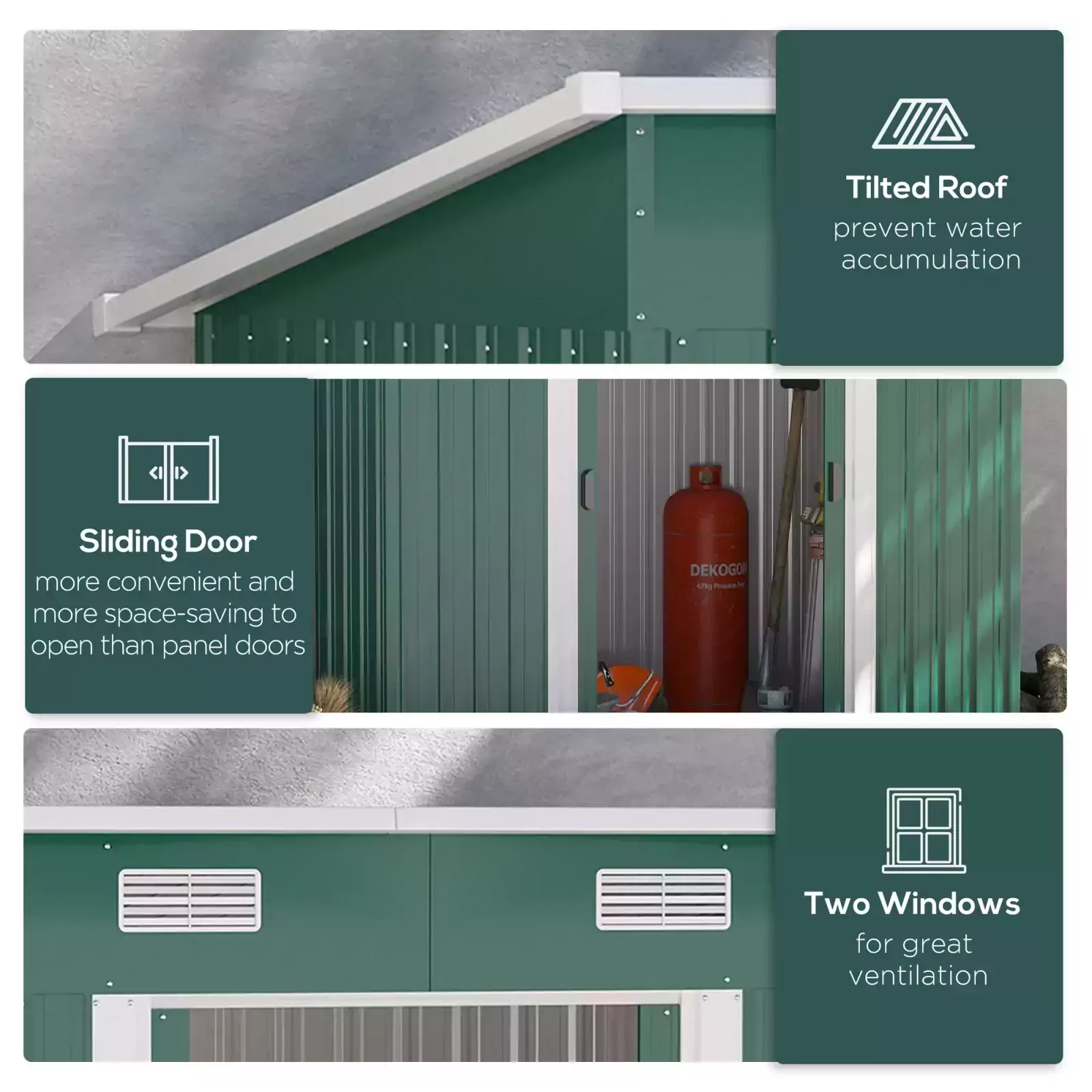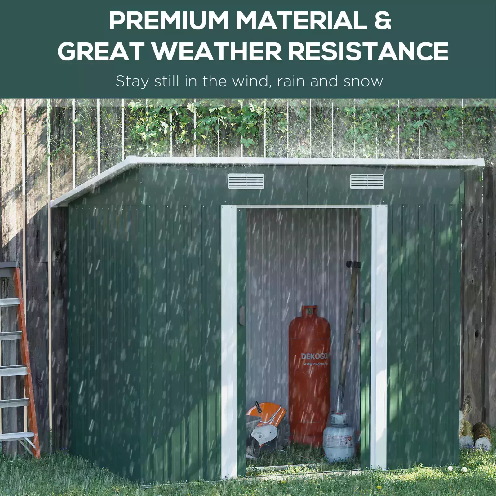 This Outsunny garden shed is a safe and protective way for keeping tools, equipment and outerwear stored. It’s also spacious enough as a bike storage shed too – great for the outdoor adventurers. Made from corrugated steel, it’s strong, fitted with a sloped shed to prevent rainwater building up. Two front vents keep the inside as fresh as possible. A sliding door for easy access, shed comes complete with a floor foundation.