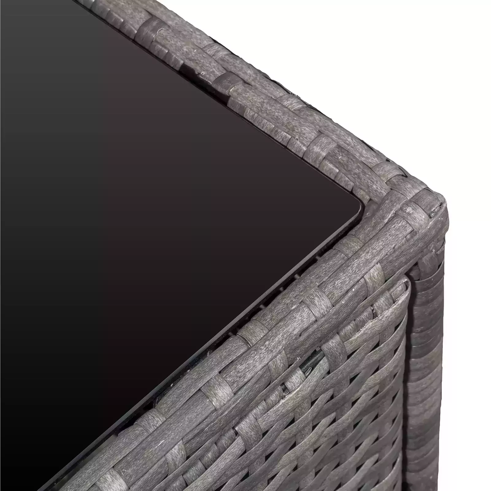 - EIGHT PIECE OUTDOOR SEATING SET: Includes four seats, two corner seats, a corner table and a coffee table with a tempered glass top.