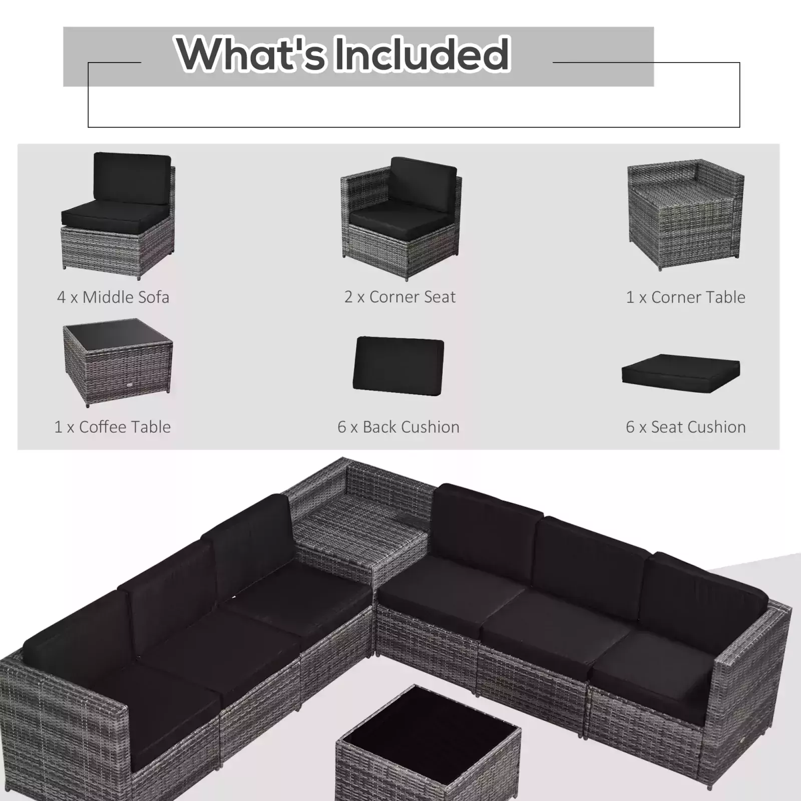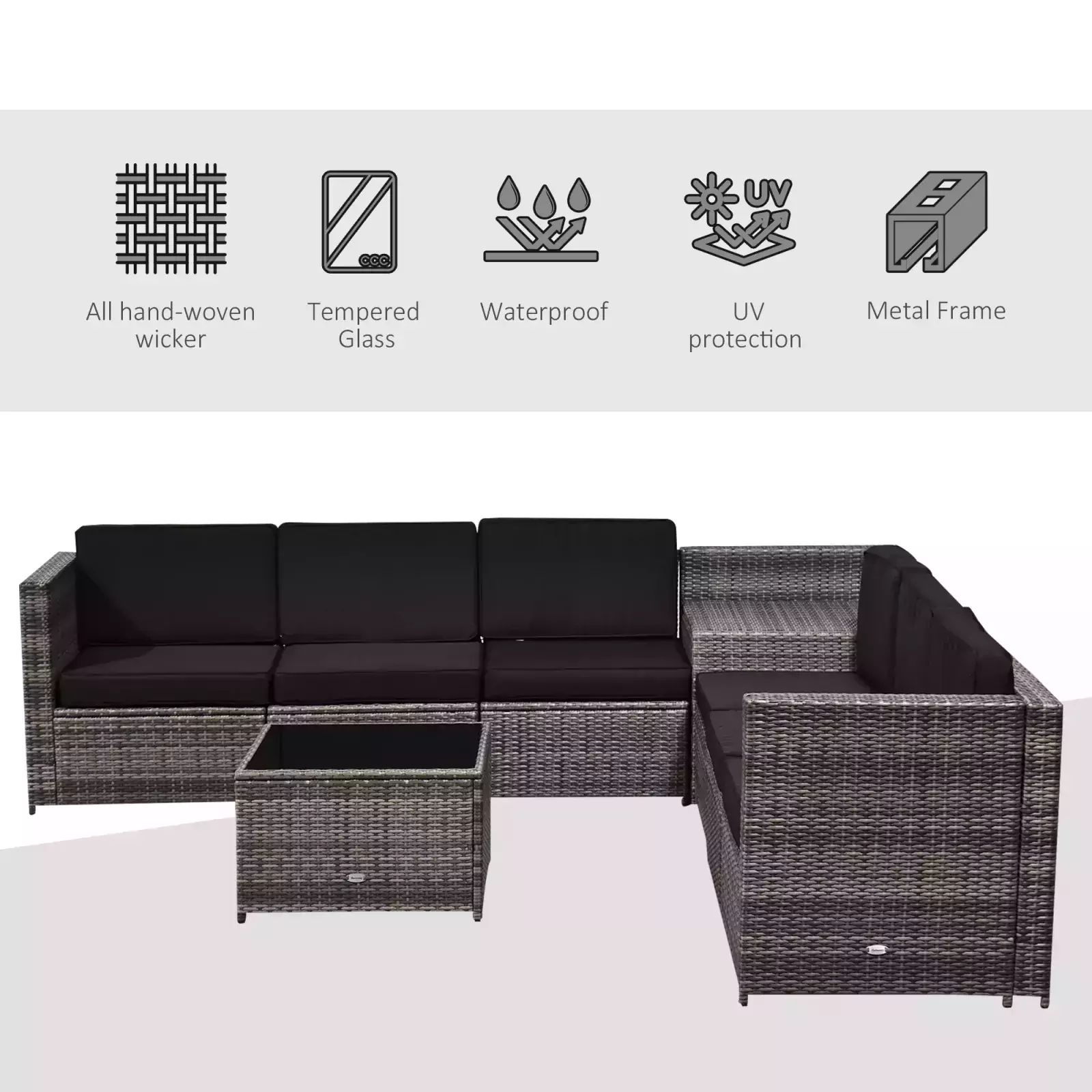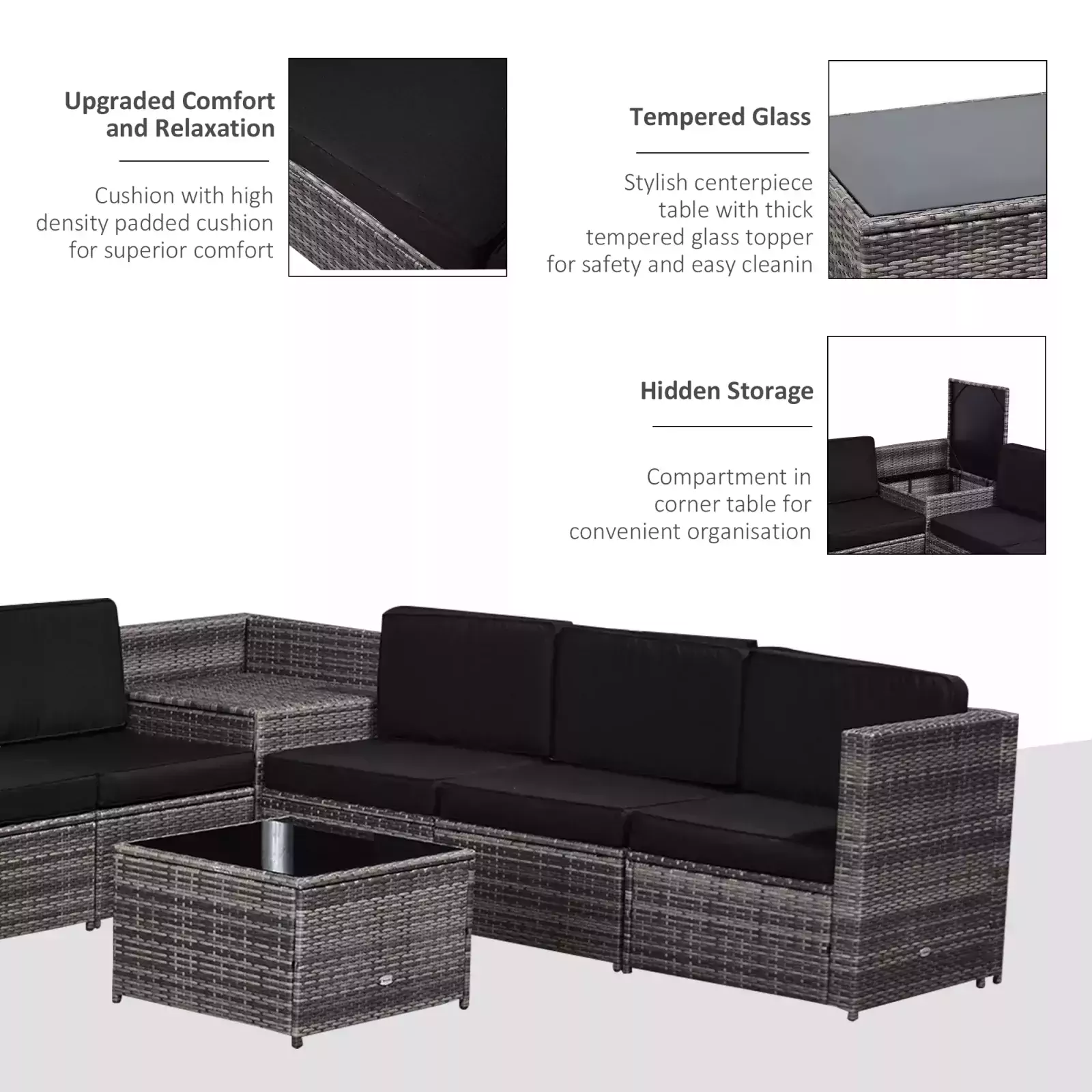 Make the most of the warm weather with this eight-piece outdoor rattan garden furniture set from Outsunny. The Outsunny 6-Seater Garden Rattan Furniture Patio Sofa and Table Set – Grey is one of our popular products. Its open design is also great for combining two or more sets together in your cafe, restaurant or business to allow you to cater to larger seating numbers and expanding your outside business revenue. Finished with a hidden storage compartment in the corner table, you’ll never leave the area in a mess, making it ideal for those with busy lifestyles and little time to spare.