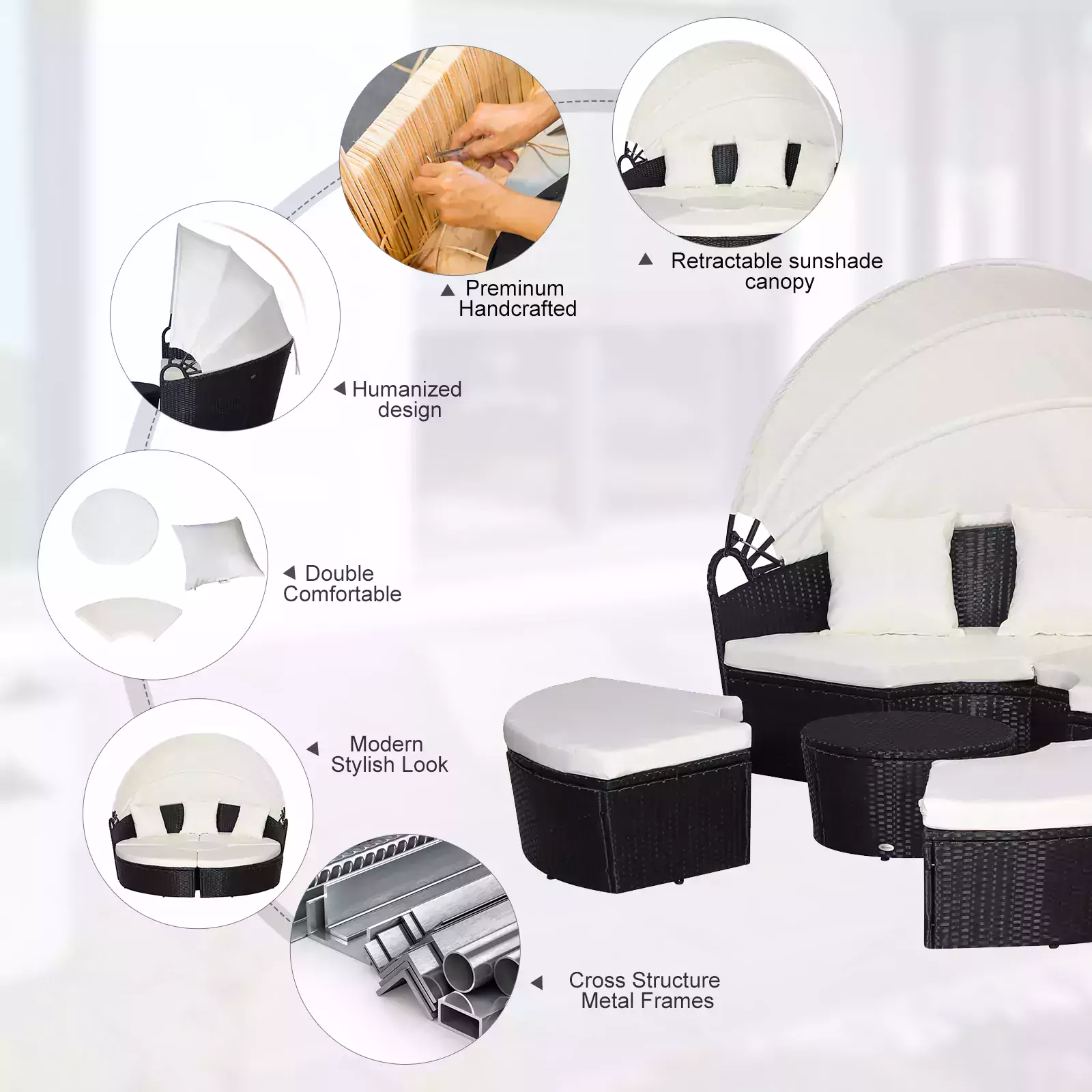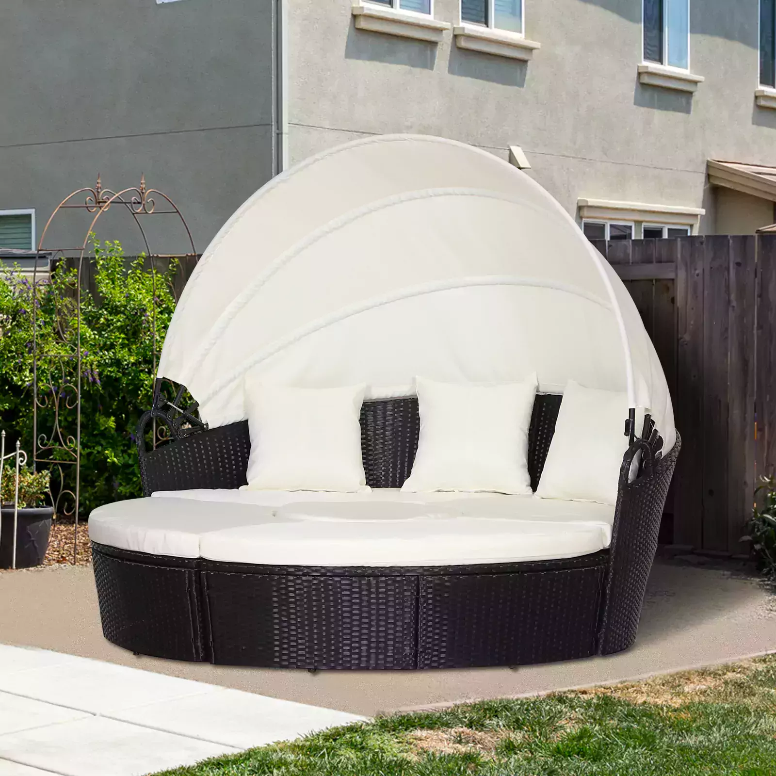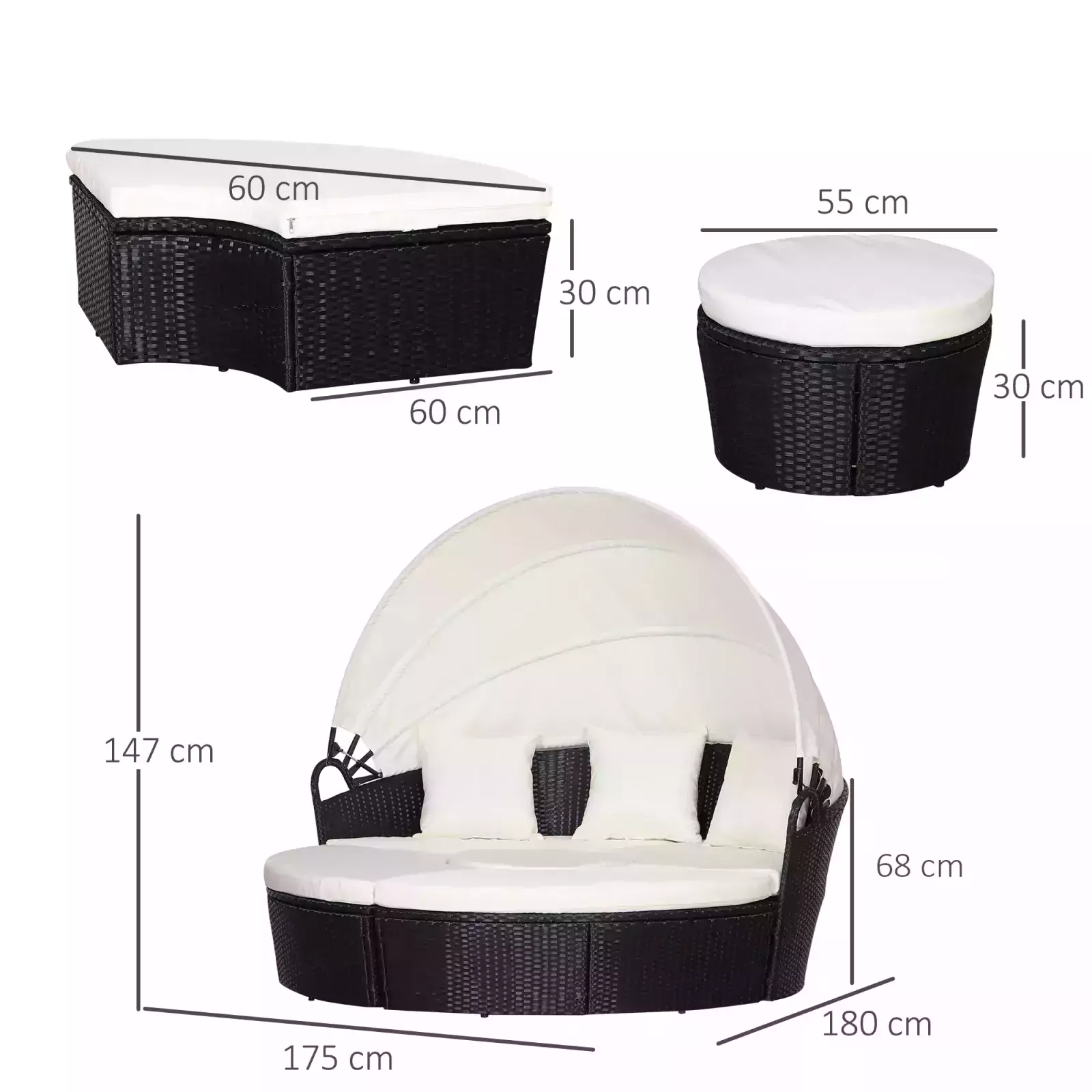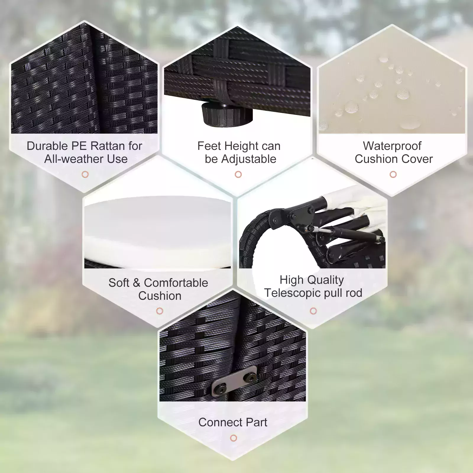 A hybrid of rattan loungers from Outsunny. The Outsunny 6-Seater Rattan Garden Furniture Set – Black includes of two quarter round chairs, two quarter round chairs and a round table. Using metal as the base frame for a strong and sturdy structure, each piece is wrapped with PE rattan to provide a shield against light weather. Thick cushions are placed on each seat for comfort, with removable and washable covers, with a large overhead canopy completing this set to offer you protection from sun glare and wind. An innovative design to get out.