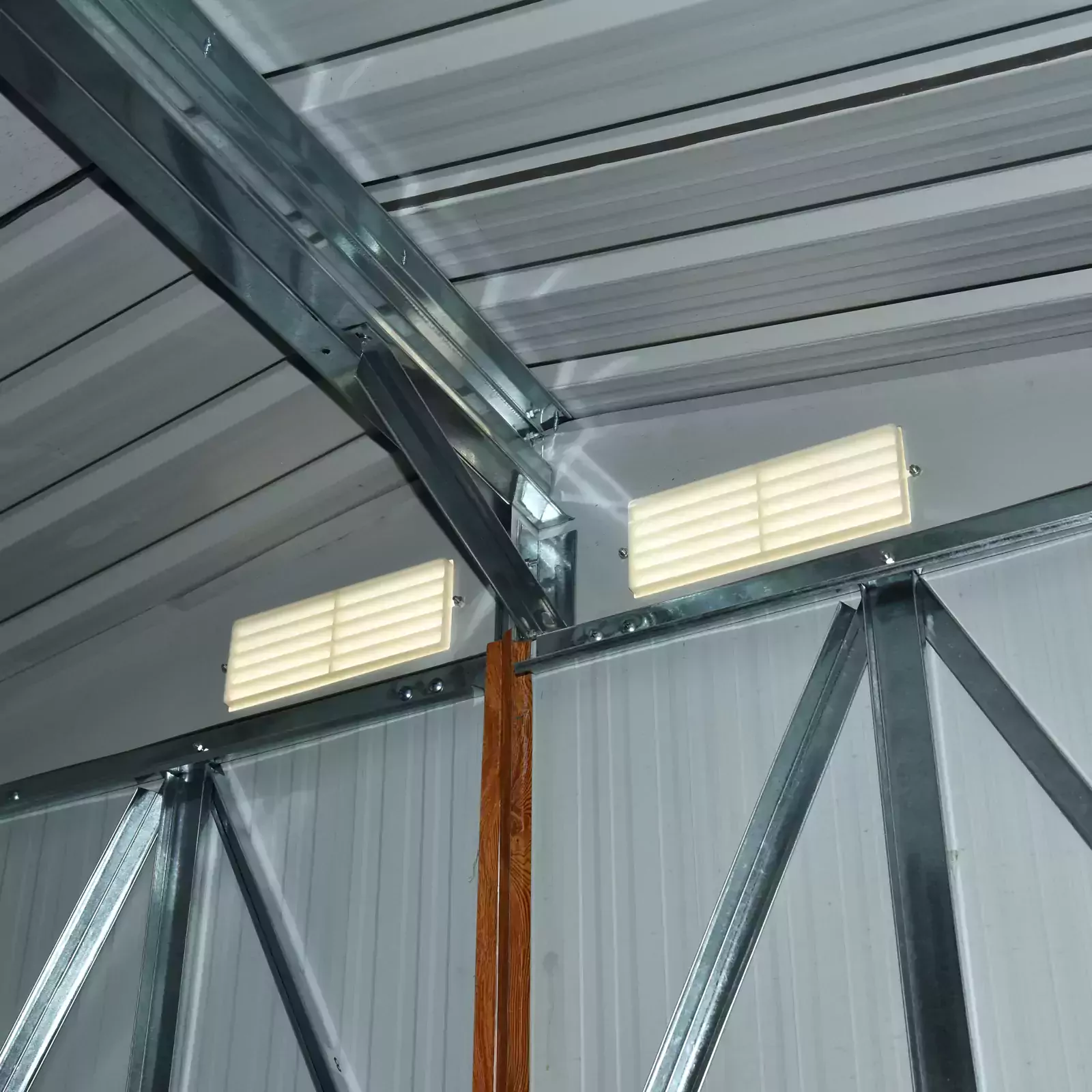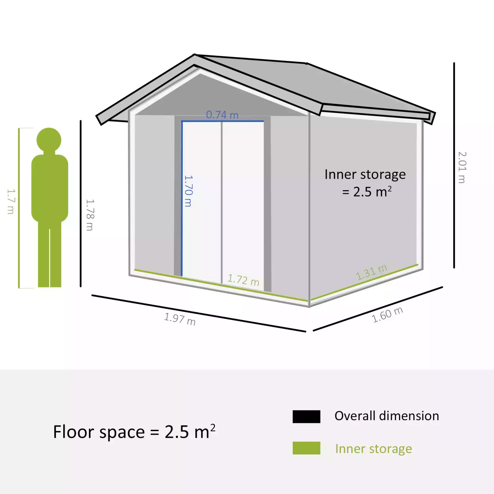 For every season there are various garden tools that must be stored properly. Our tool shed helps you maintain order, whether for tools, gloves, rubber boots, hoses or the like. Made from sturdy and durable colour-coated steel-plate and Polypropylene components, it has a protective film on metal panels for long term use, and also vents for airflow. The whole structure is painted to blend in with surroundings and can be used as a storage solution or as a work shed.