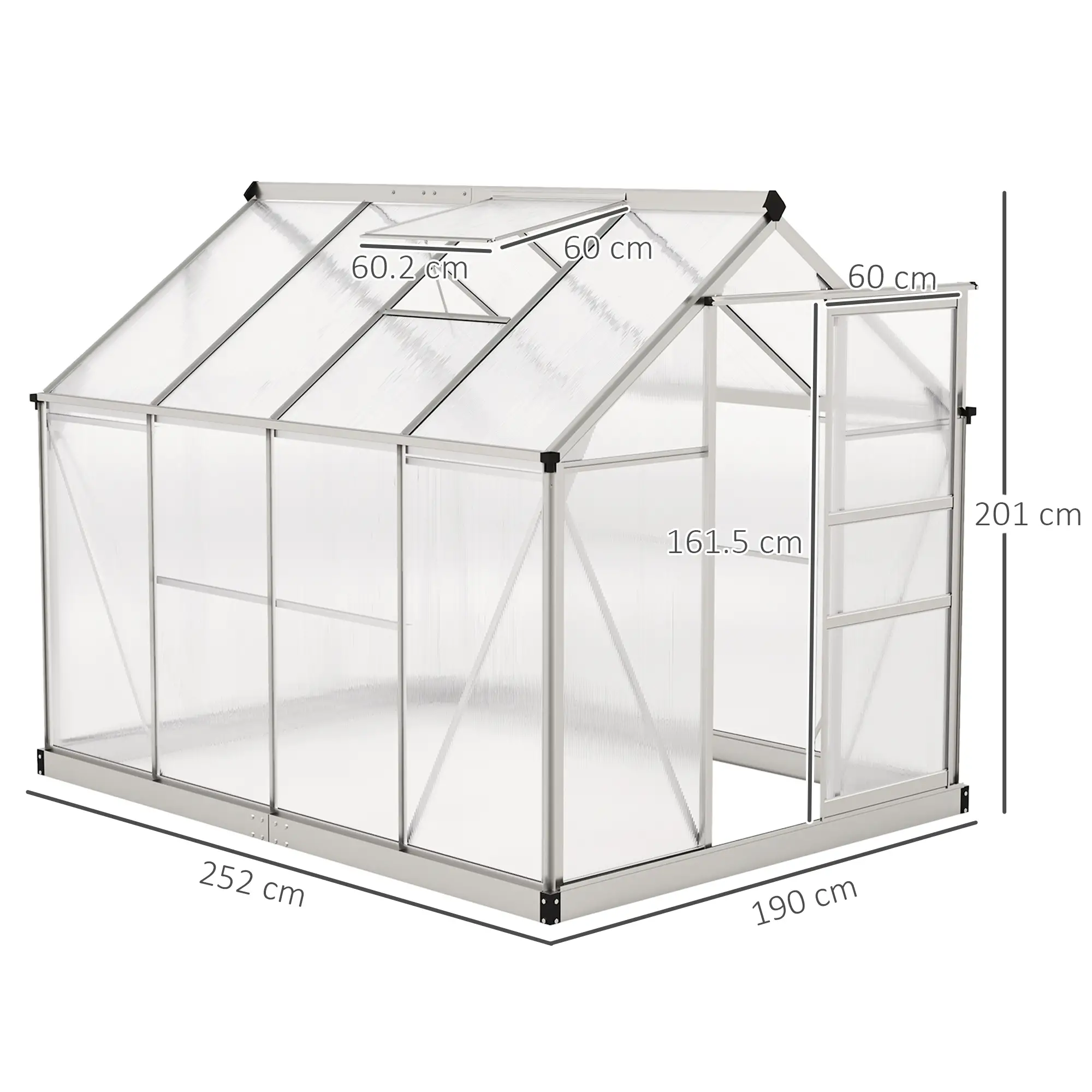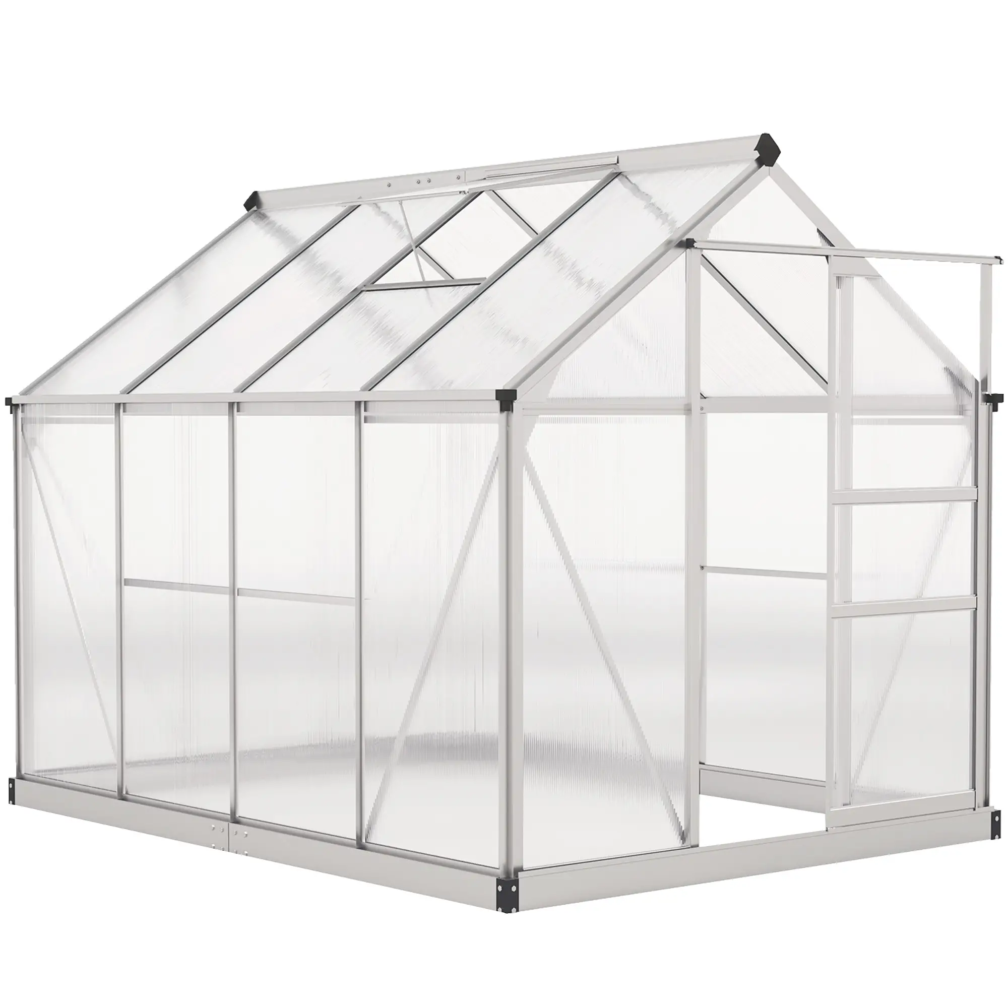 Start and continue the season right with this Outsunny 6ft x 8ft Polycarbonate Greenhouse – Silver Tone Clear.