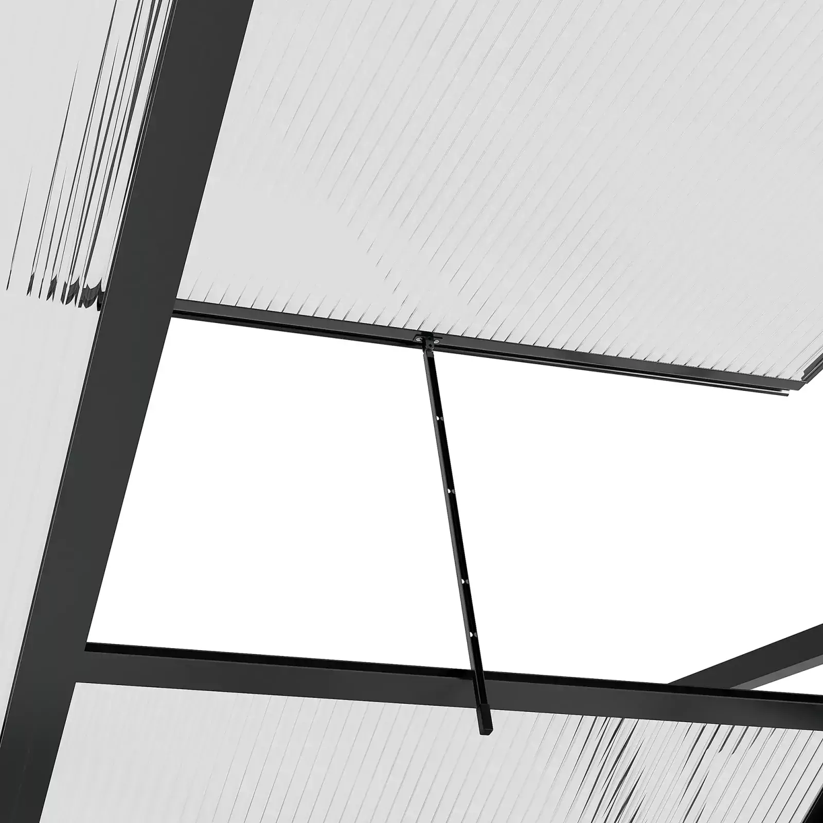 Rooftop vent panel: Outside greenhouse polycarbonate features a hinged rooftop panel which ensures that proper ventilation is provided to the inside of your greenhouse aluminium.