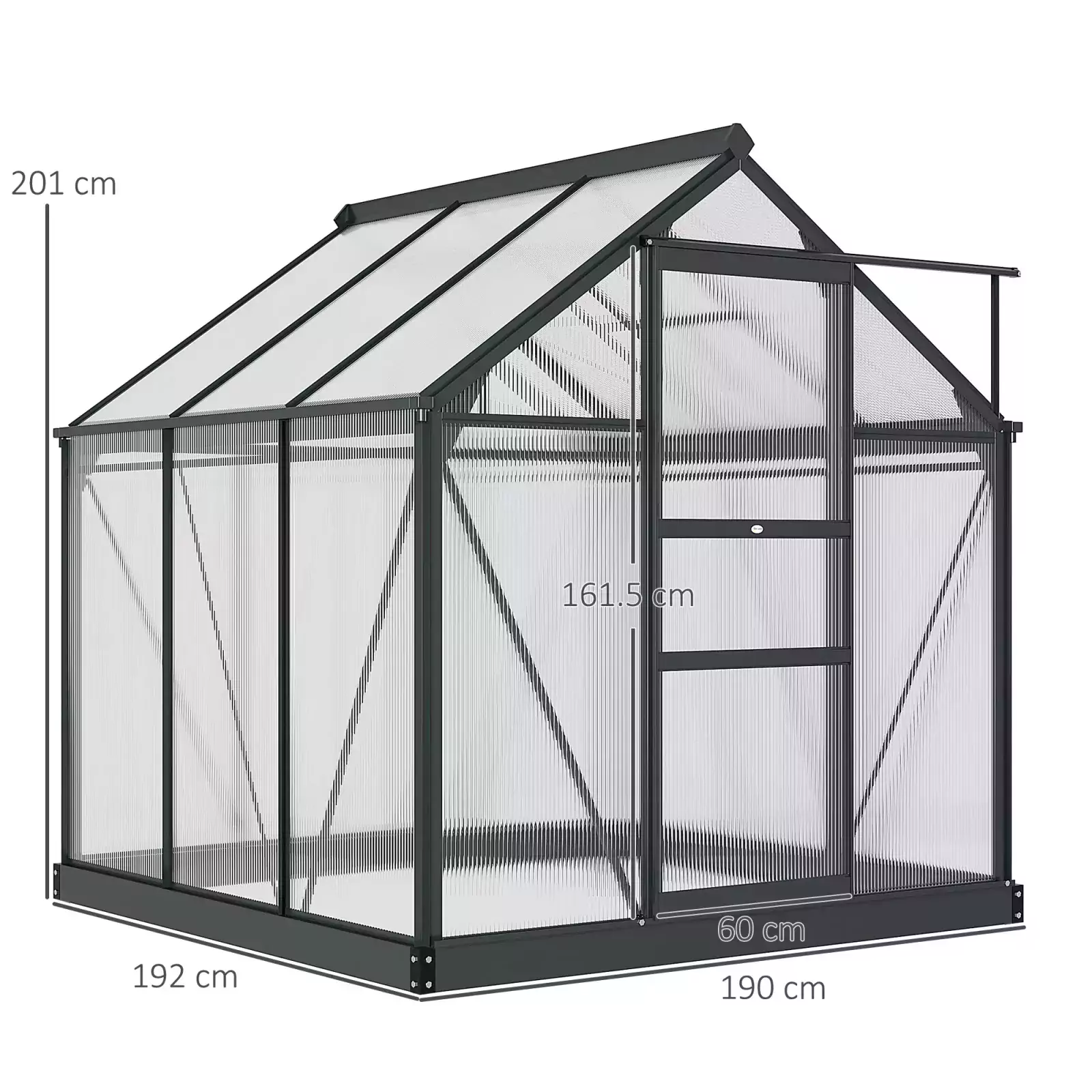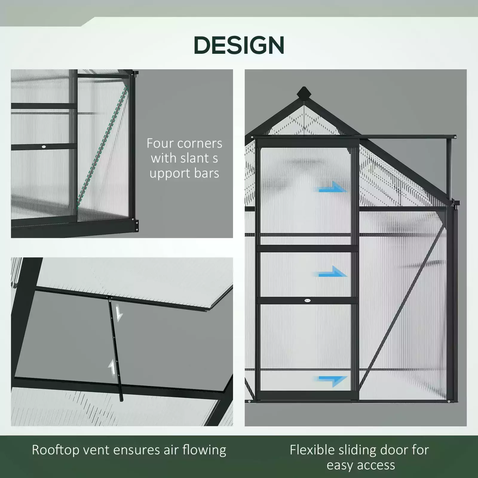 Start and continue the season right with this Outsunny 6’x6′ Clear Polycarbonate Greenhouse – Grey. An open, walk-in design means it’s easy to enter and leave, whilst giving you the full free space to set it up how you want. A powder-coated aluminium frame means a strong structure, with four ground stakes included to pin to the ground. Features a sliding door for easy access in and out, with a lift-up roof which holds in place – it’s easy to let in fresh air, whenever you want.