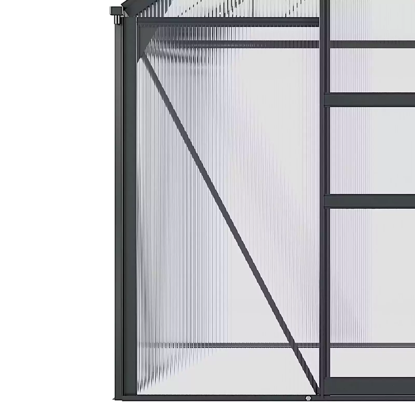 - Polycarbonate panels: Creates a safe shelter inside, shielding from wind and rain – helping plants grow! Transparent to allow sunlight through for much-needed nourishment.