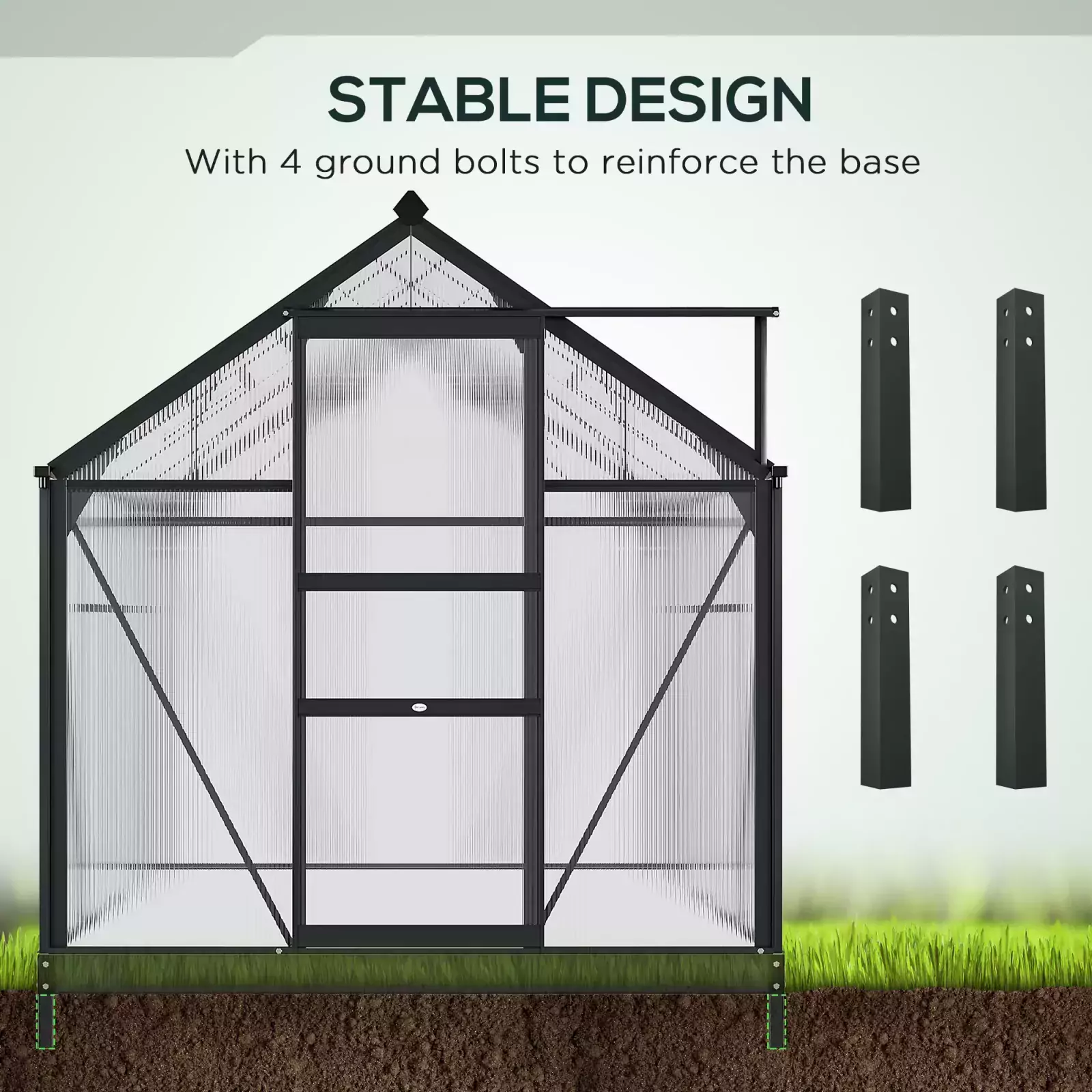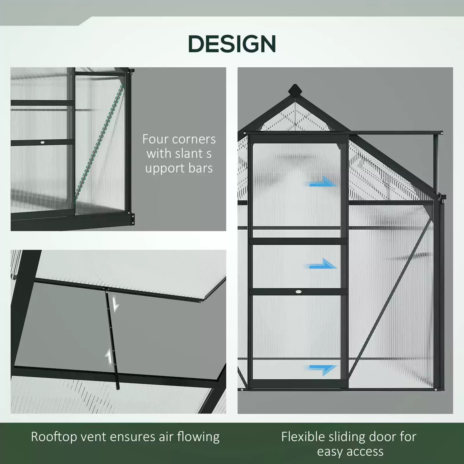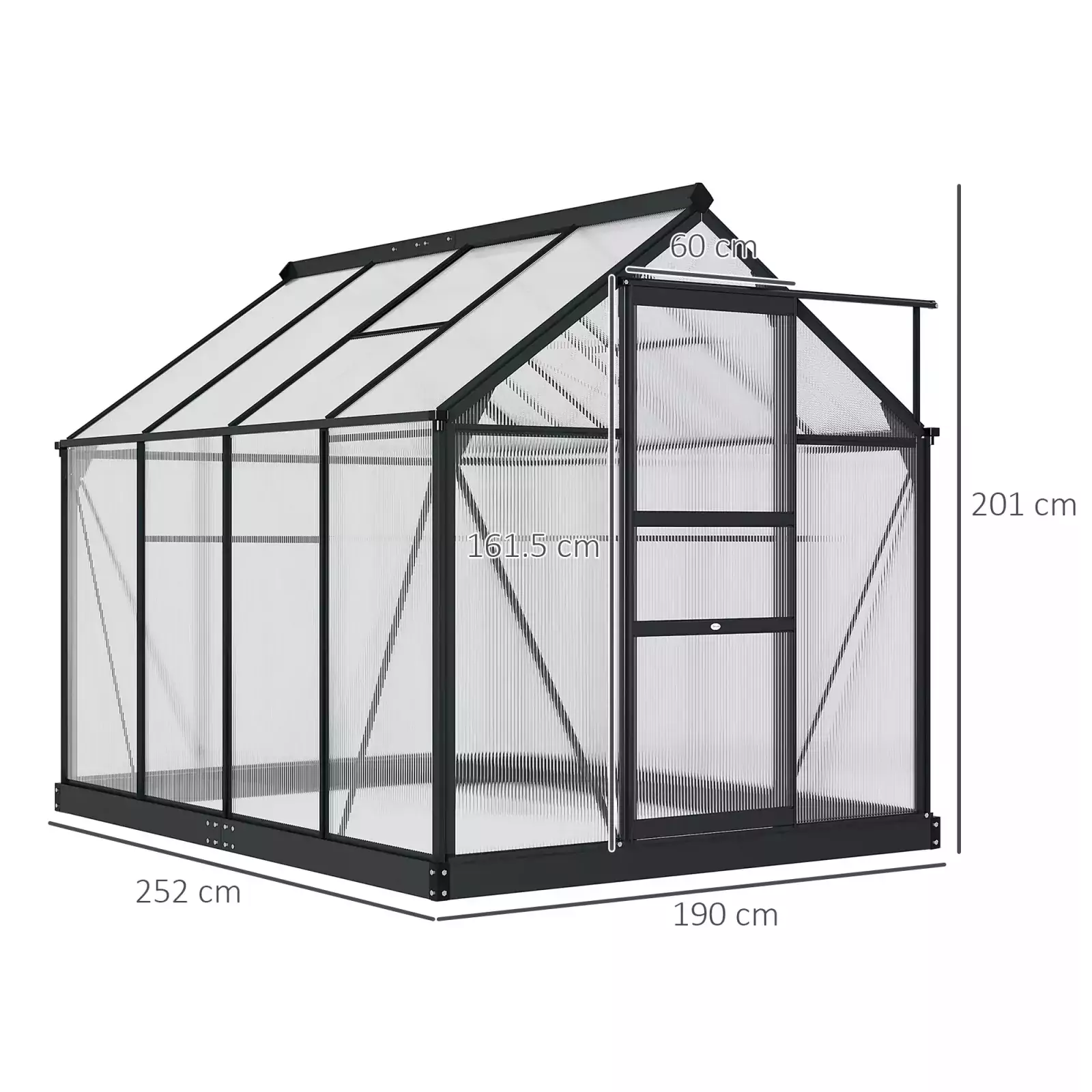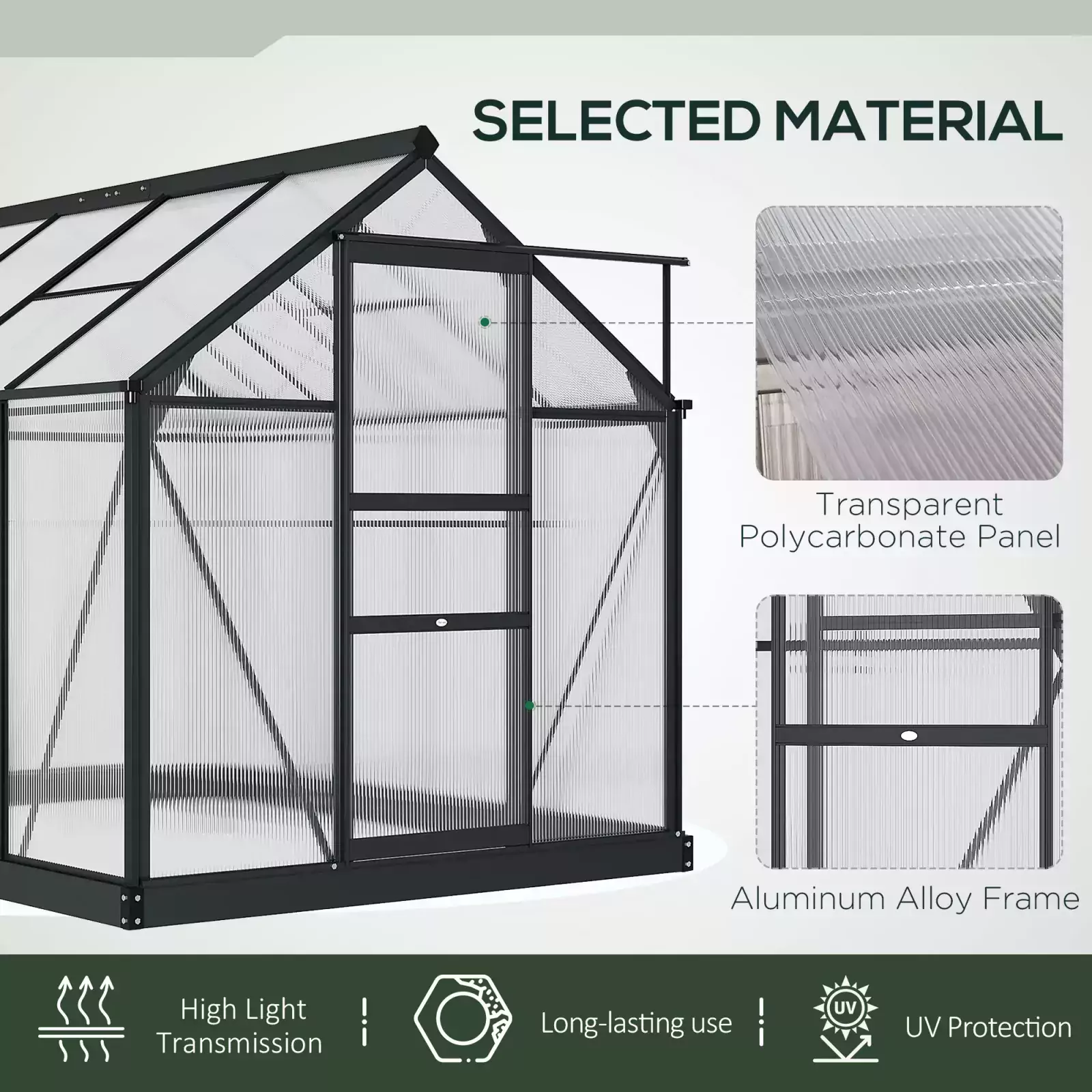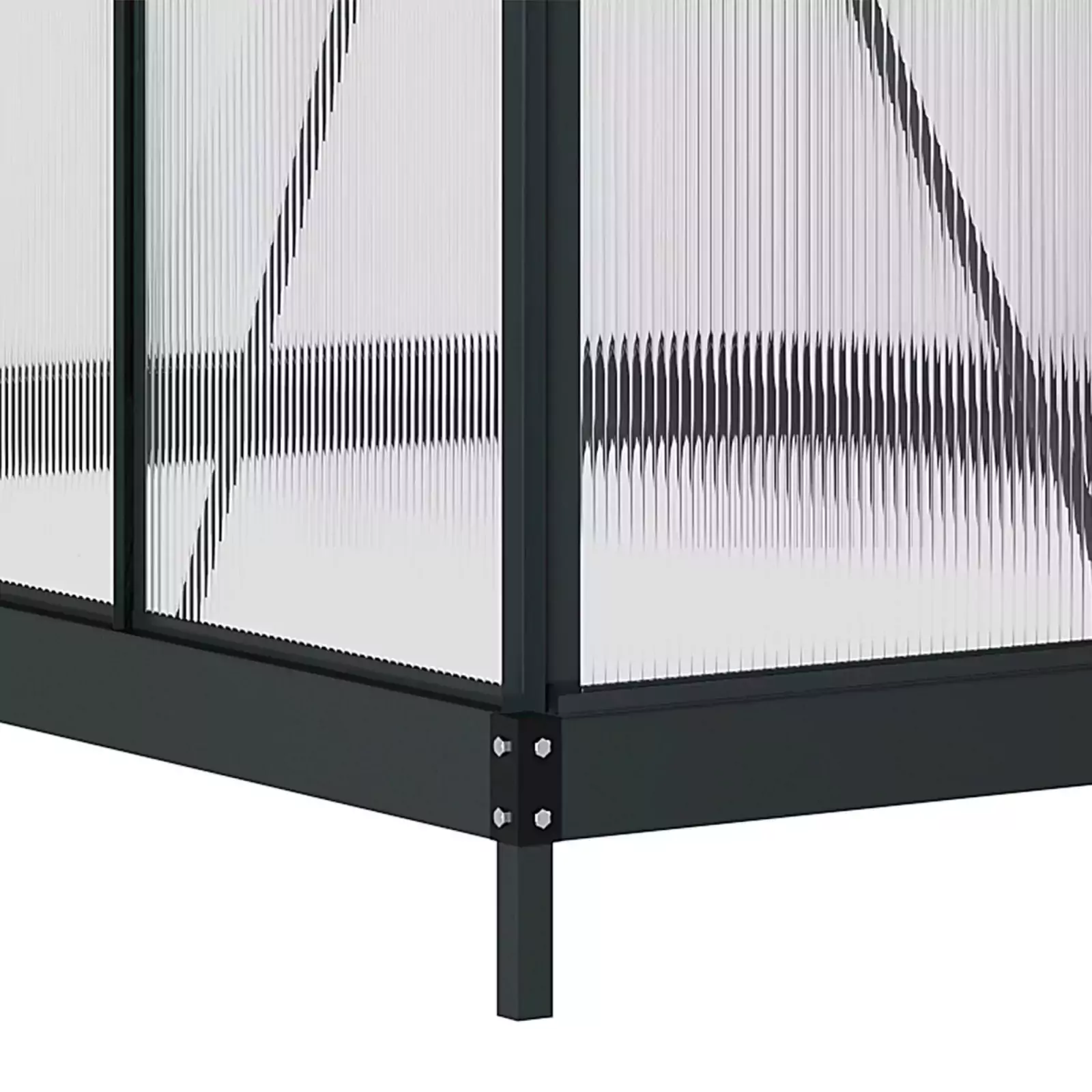 Start and continue the season right with this Outsunny 6’x8′ Clear Polycarbonate Greenhouse – Grey. An open, walk-in design means it’s easy to enter and leave, whilst giving you the full free space to set it up how you want. A powder-coated aluminium frame means a strong structure, with four ground stakes included to pin to the ground. Features a sliding door for easy access in and out, with a lift-up roof which holds in place – it’s easy to let in fresh air, whenever you want.