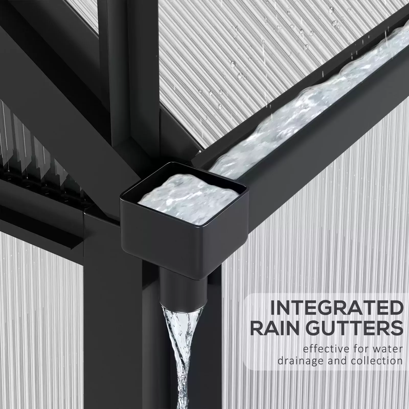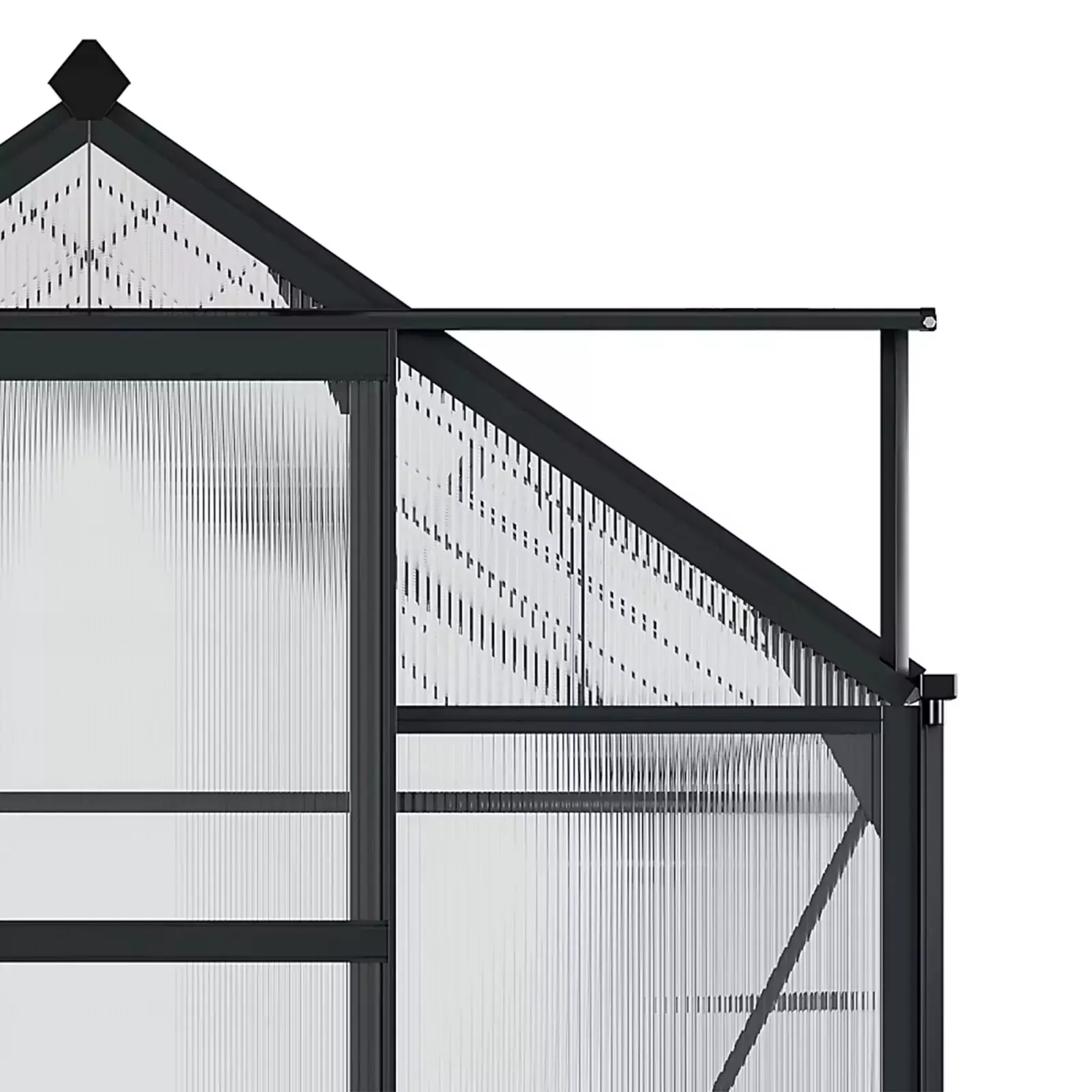 Polycarbonate panels: Creates a safe shelter inside, shielding from wind and rain – helping plants grow! Transparent to allow sunlight through for much-needed nourishment.