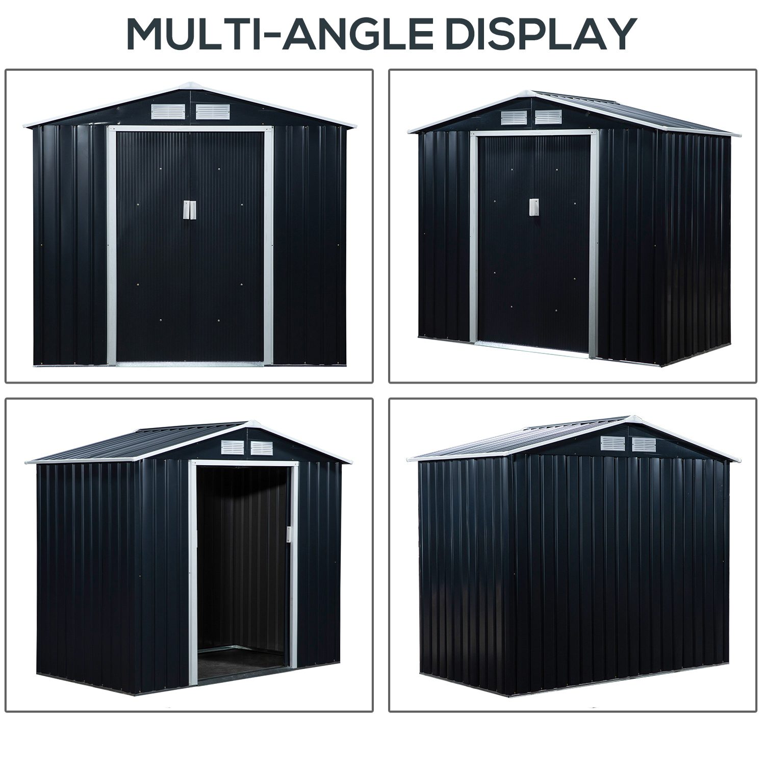 Outsunny 7ft x 4ft Metal Garden Shed – Dark Grey with Foundation Grid
