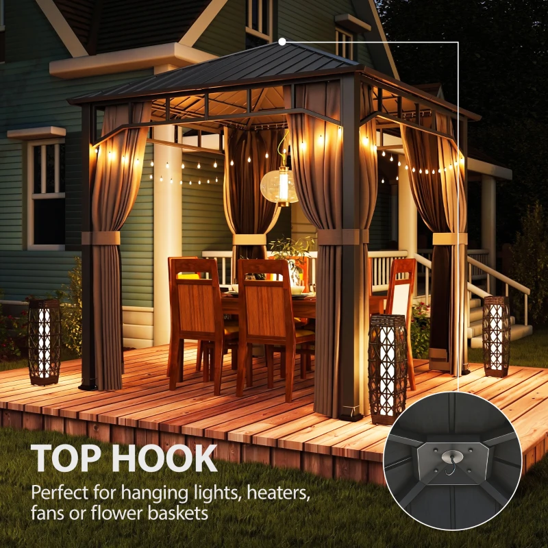 Decorative Ceiling Hook: Equipped with a ceiling hook, this patio gazebo allows you to hang lights, fans, or decorations, transforming it into a personalized pavilion gazebo.