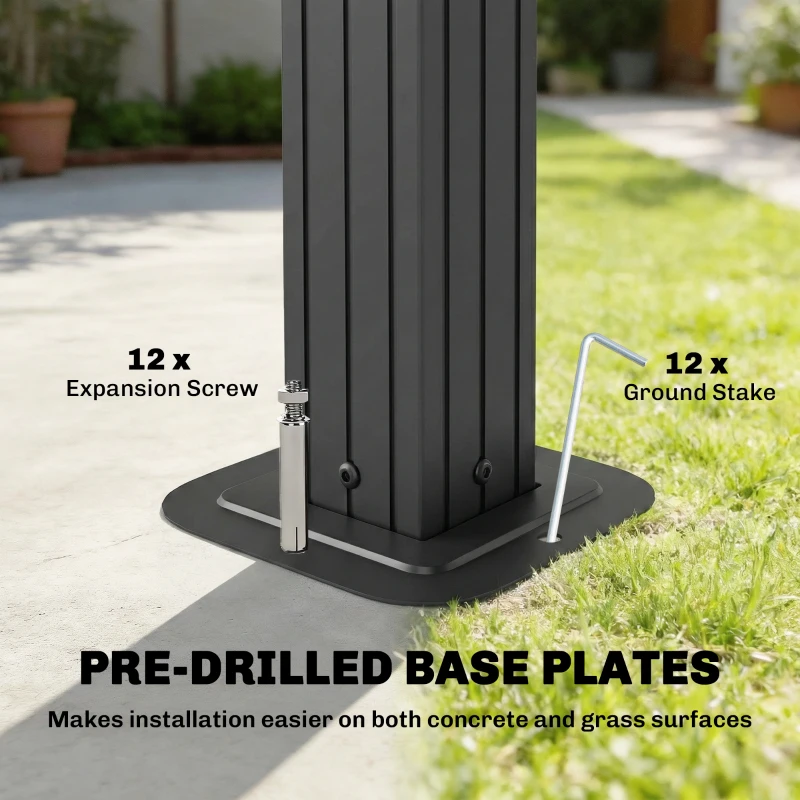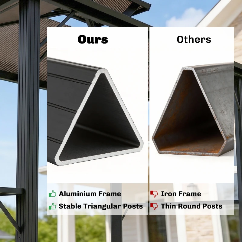 7.6 x 7.6 cm thick powder coated aluminium frame for stability and weather resistance