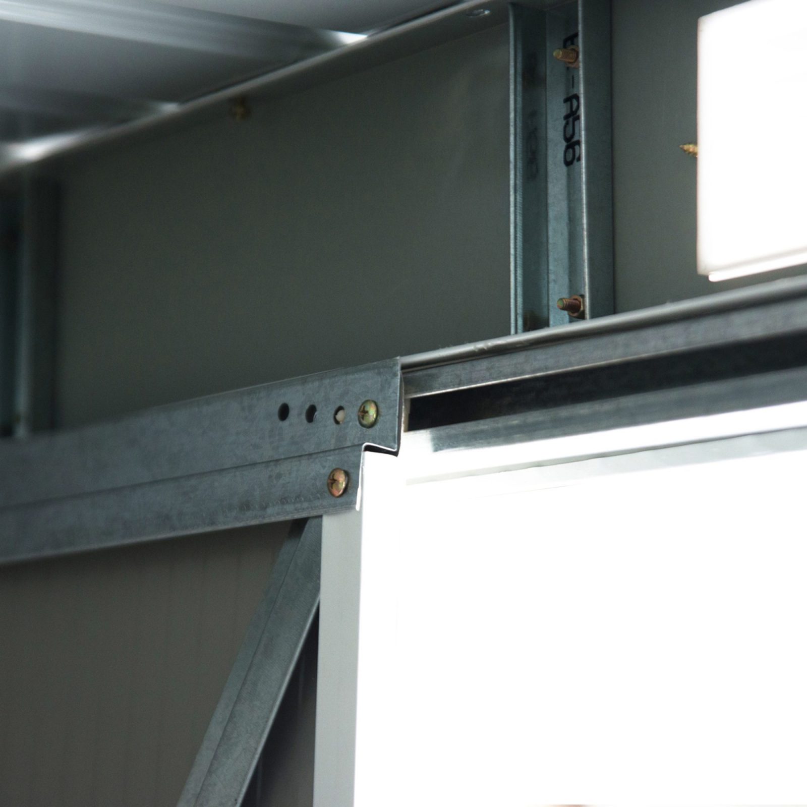 GALVANISED STEEL: Finished with a top coat for weather protection, this small shed is strong and durable for long lasting use in your garden.