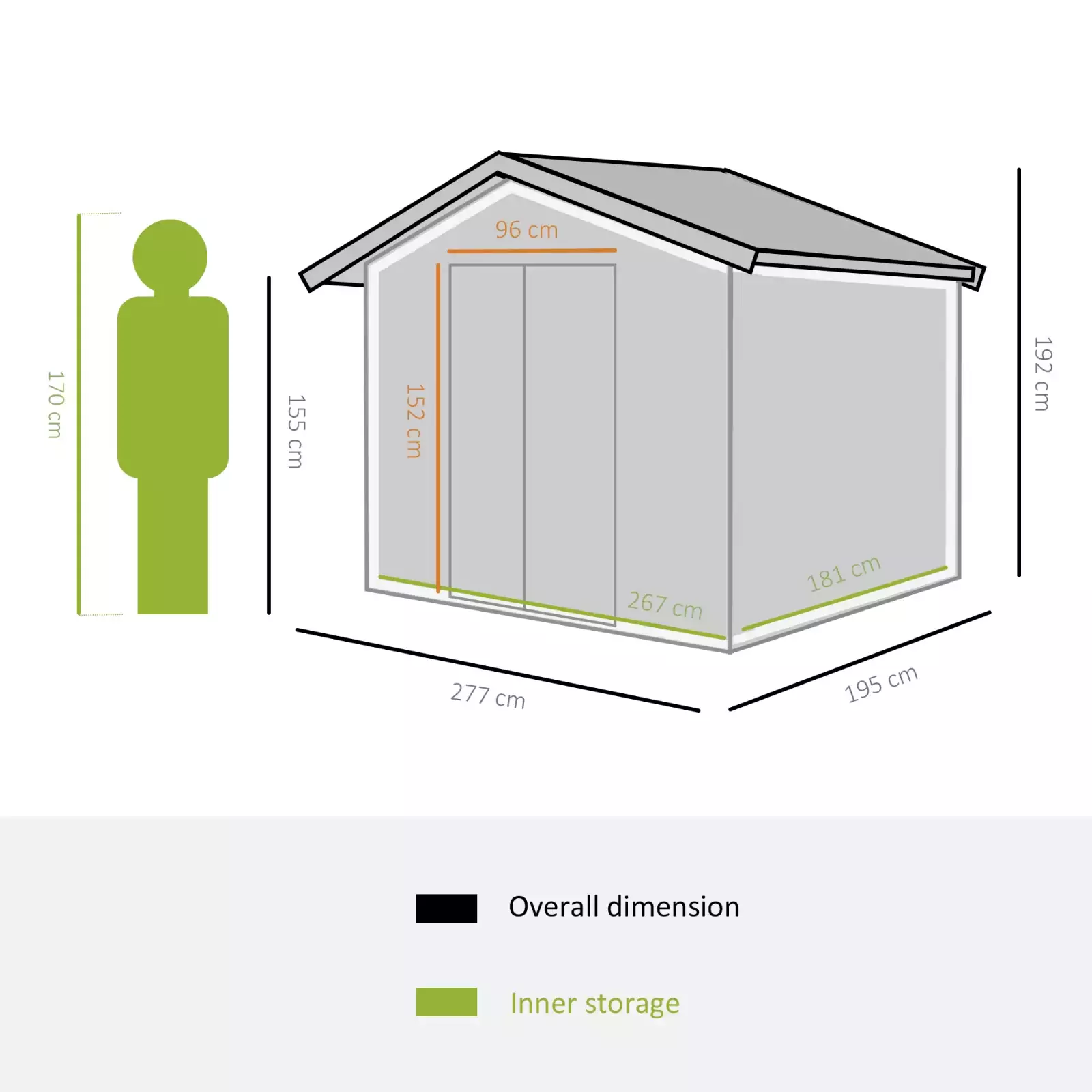 Room Interior Dimension: 267L x 181W x 192H (cm)