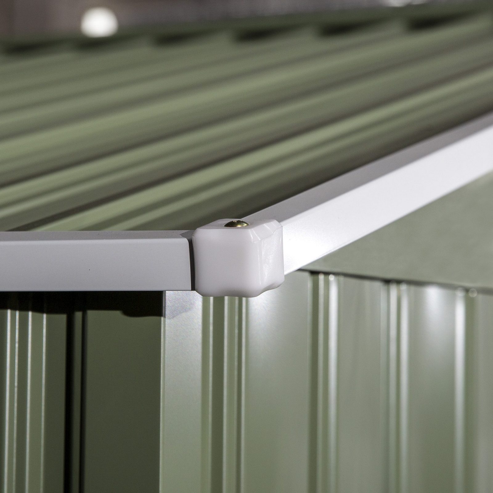 The Outsunny 9ft x 6ft Metal Garden Shed – Olive Green with Foundation Grid with Foundation Grid is an ideal solution to have in your garden, A great place to store tools, garden equipment, or any items you need to store. Made from metal and plastic components, and also has air vents for airflow. The whole structure is painted to blend in with surroundings. It can be used as a storage solution or as a work shed.