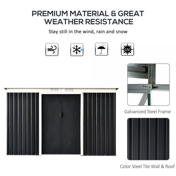 Is there not enough storage space to keep the tools in your garden. The Outsunny 9’x4′ Metal Pent Shed with Foundation Grid – Dark Grey can help you solve the trouble.