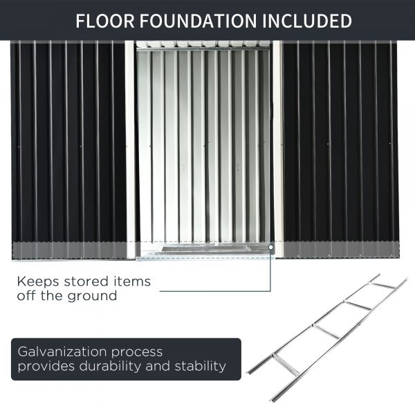 DOUBLE SLIDING DOORS: Allows easy access in and out this metal bike shed and save storage space. Our metal garden sheds with base provides safe area to keep your equipment.